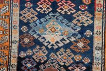Handmade antique Oriental rug from the beginning of 20th century. The rug is in original good condition, has all-over design on navy blue background.