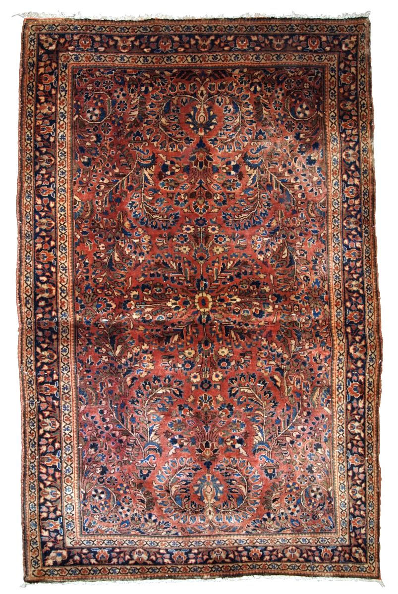 Hand-weaved antique Oriental rug from the beginning of 20th century. The rug is in original good condition, made in classic floral design.
