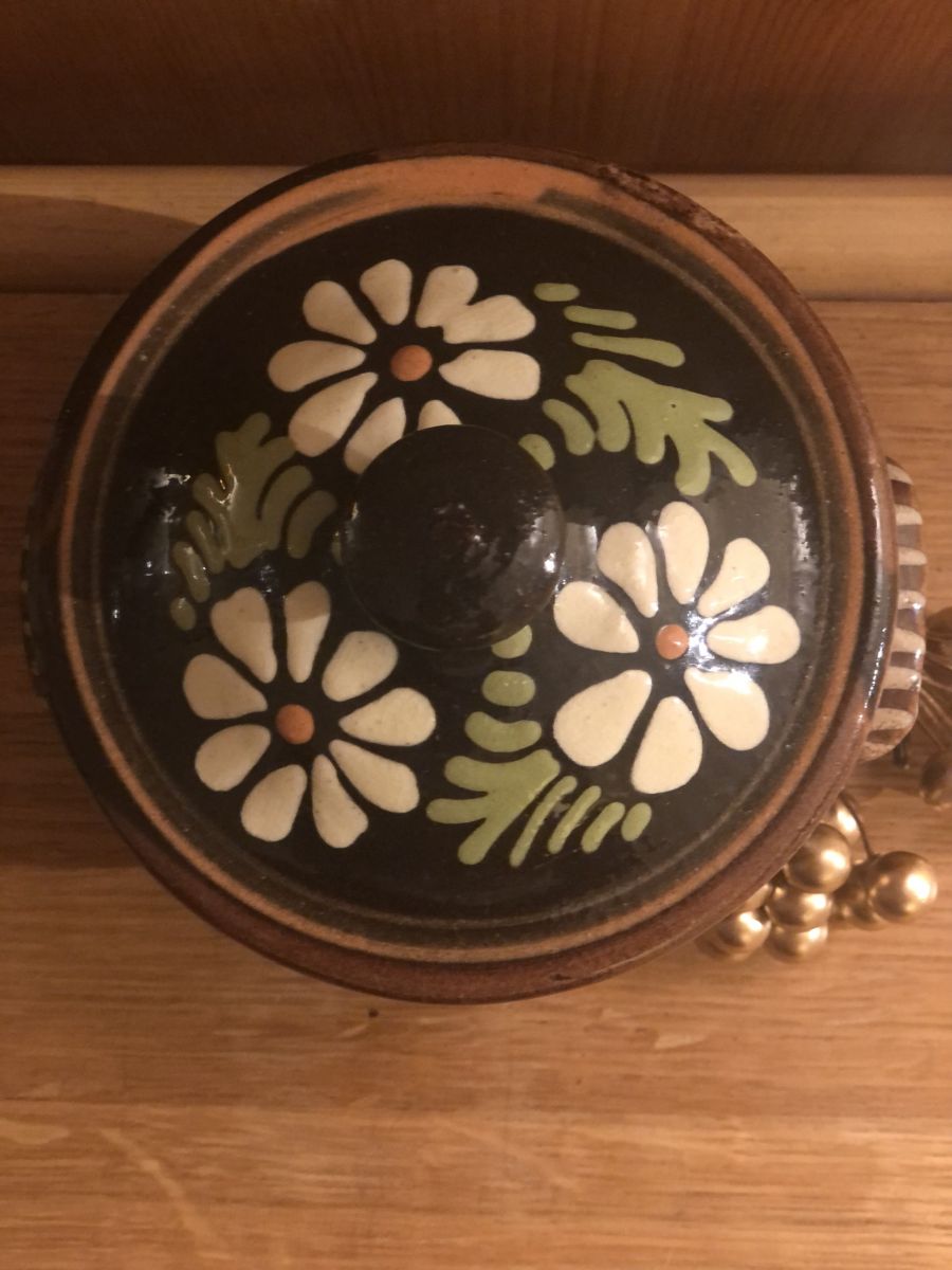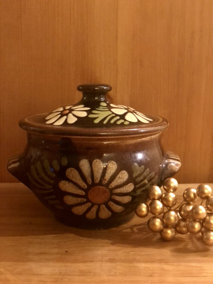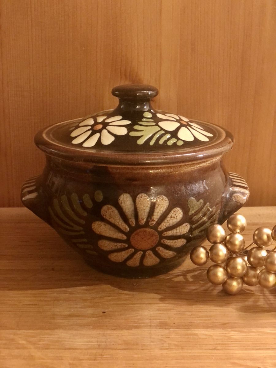 Petit pots vintage en bon état marron et fleurs datant des 9