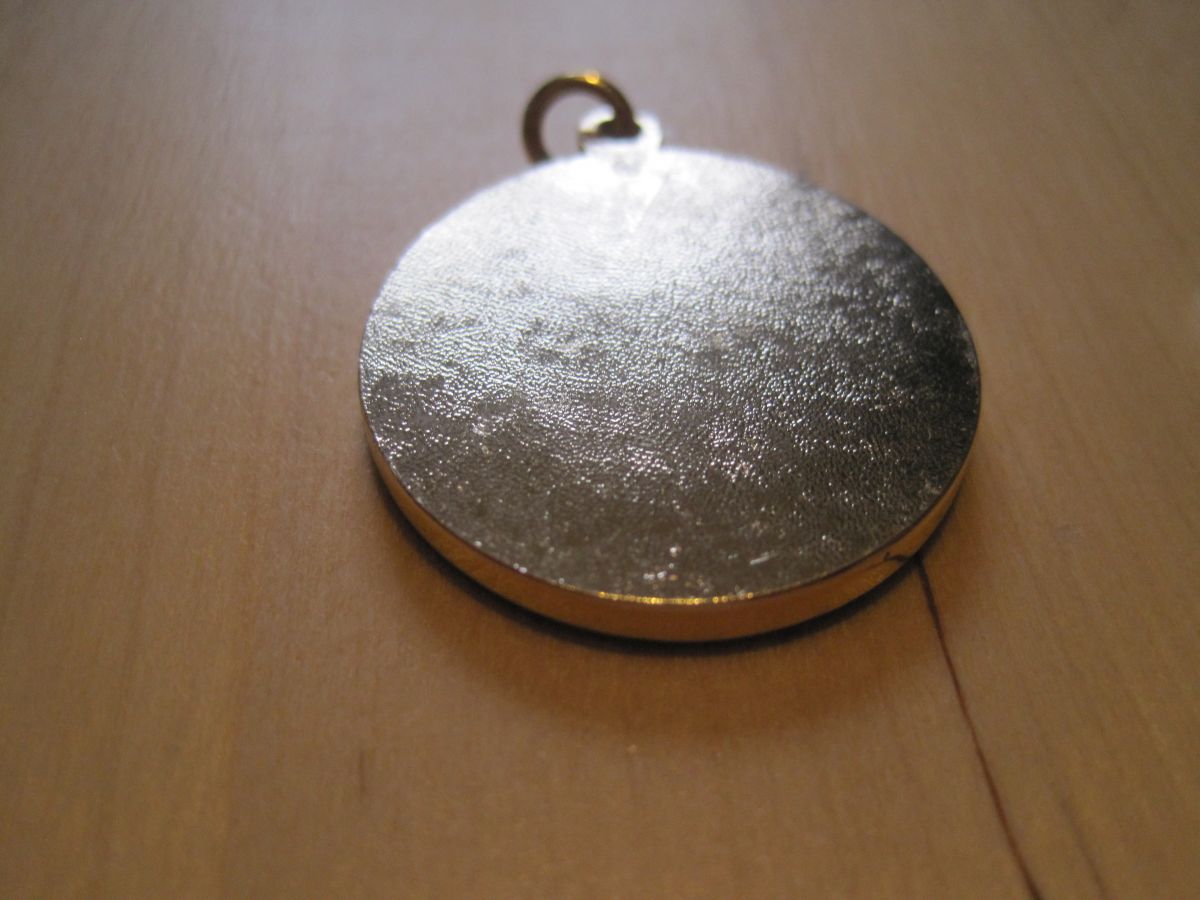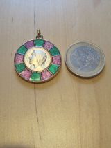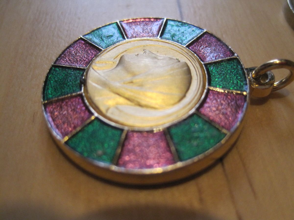 en métal doré diamètre 25mm avec au centre un estampé bien doré en métal doré représentant la vierge