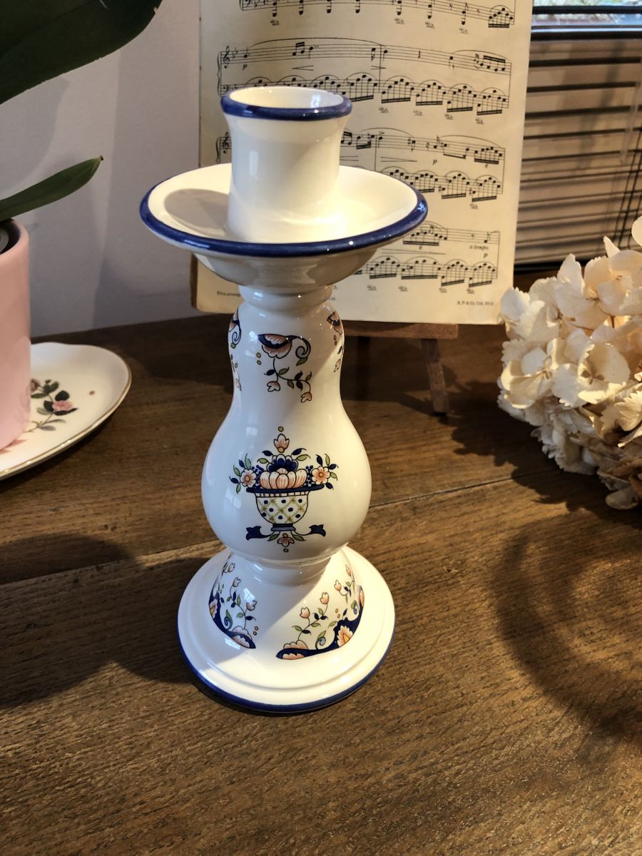 Bougeoir céramique faïence style Vieux Rouen - Occasion - Excellent état.