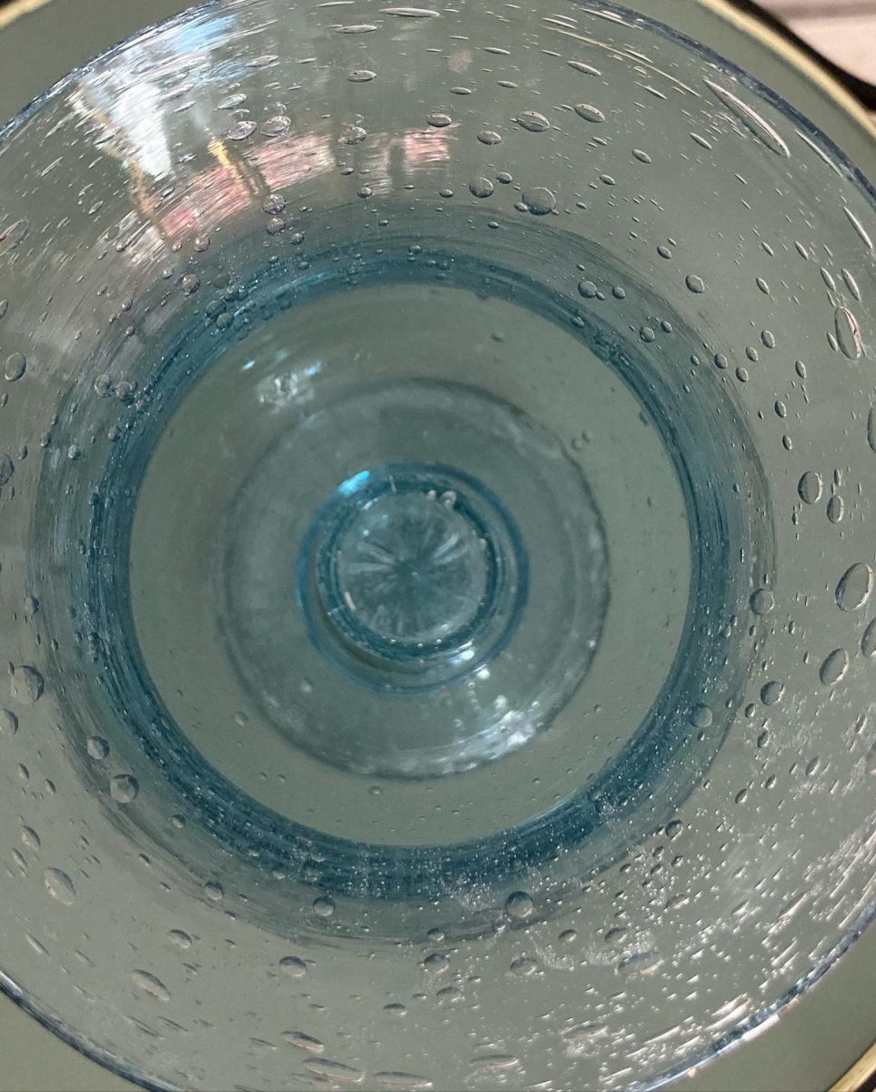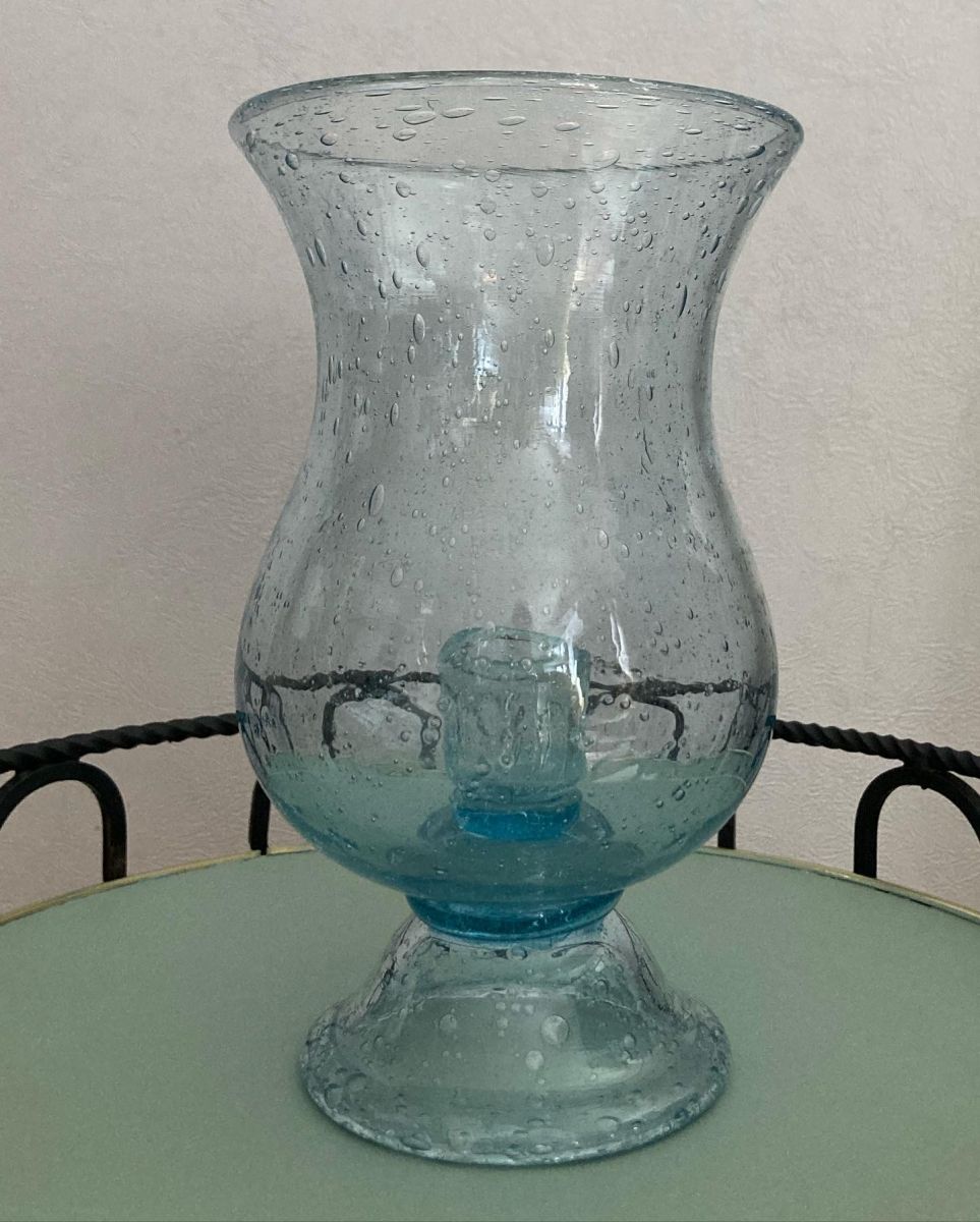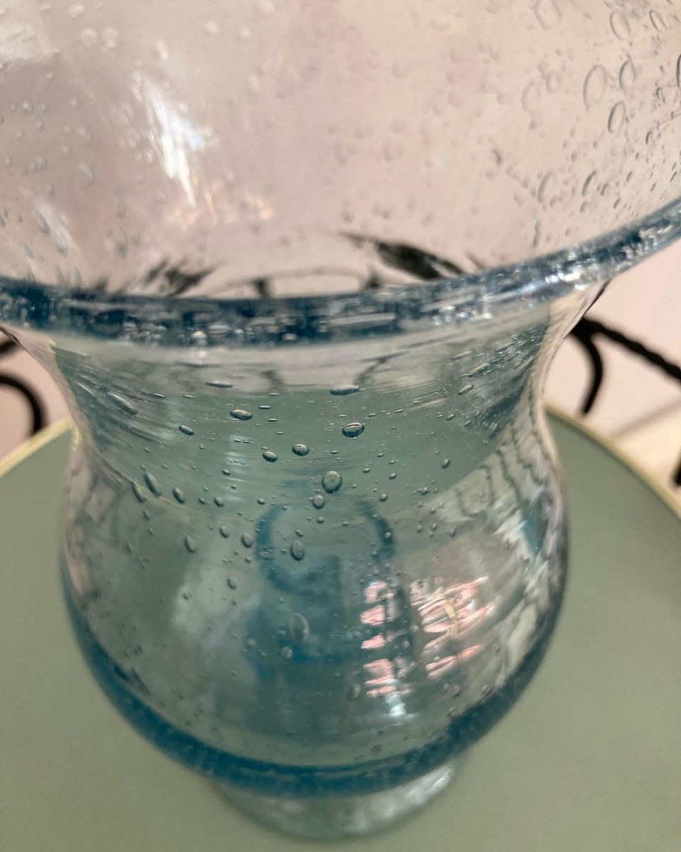 Très beau bougeoir en verre soufflé bullé de la verrerie de Biot (Alpes Maritime)