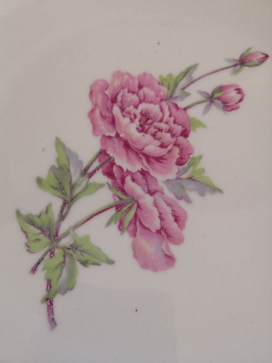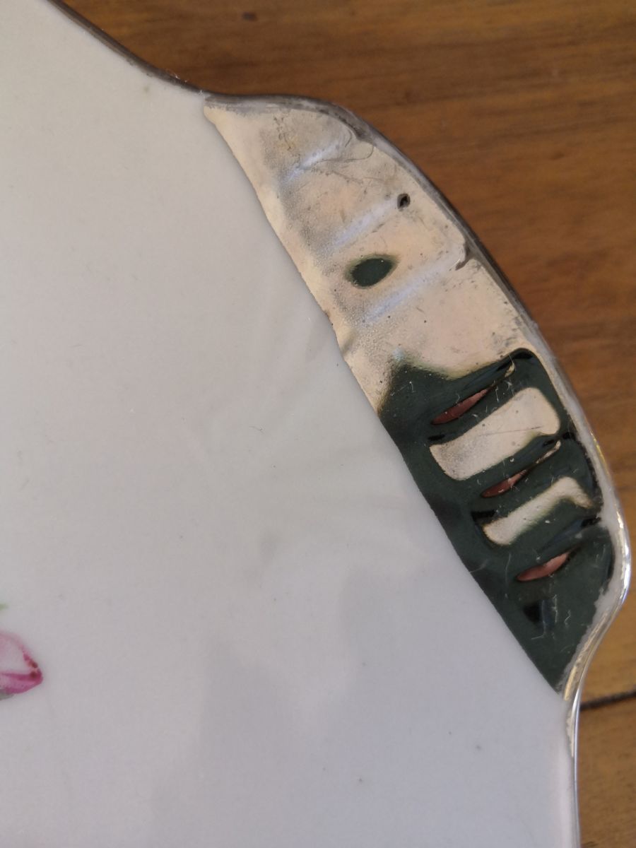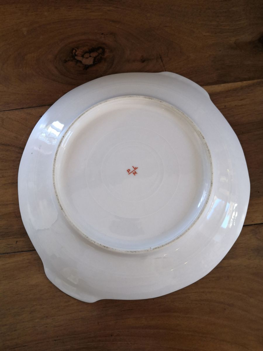 Ravissant plat de présentation/service rond shabby chic des années 40-50.