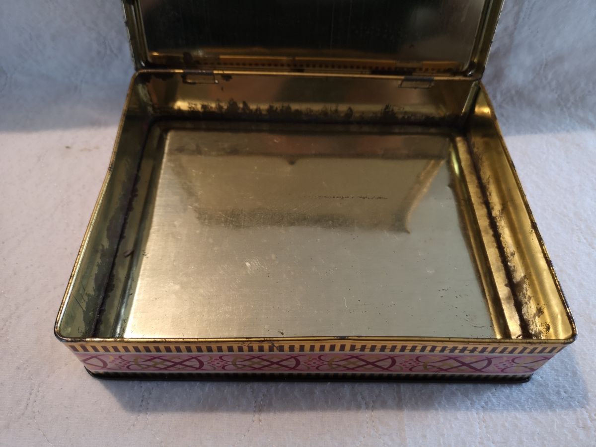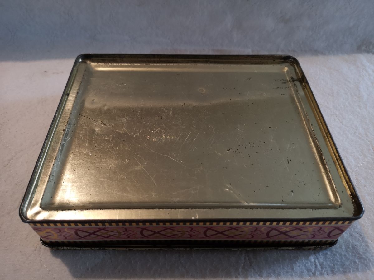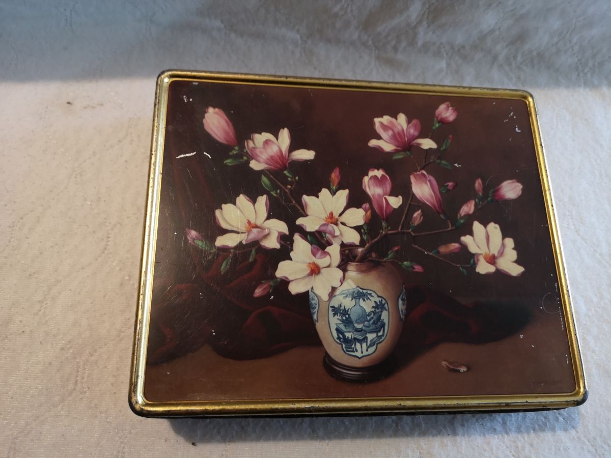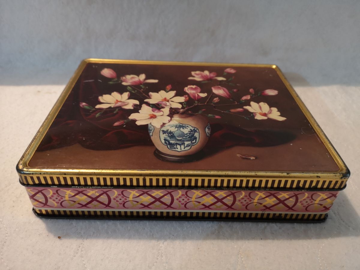 boite métal décor vase et fleurs période 1950/60 format 20 cm de longue 16,5 cm de large et 4 cm de hauteur