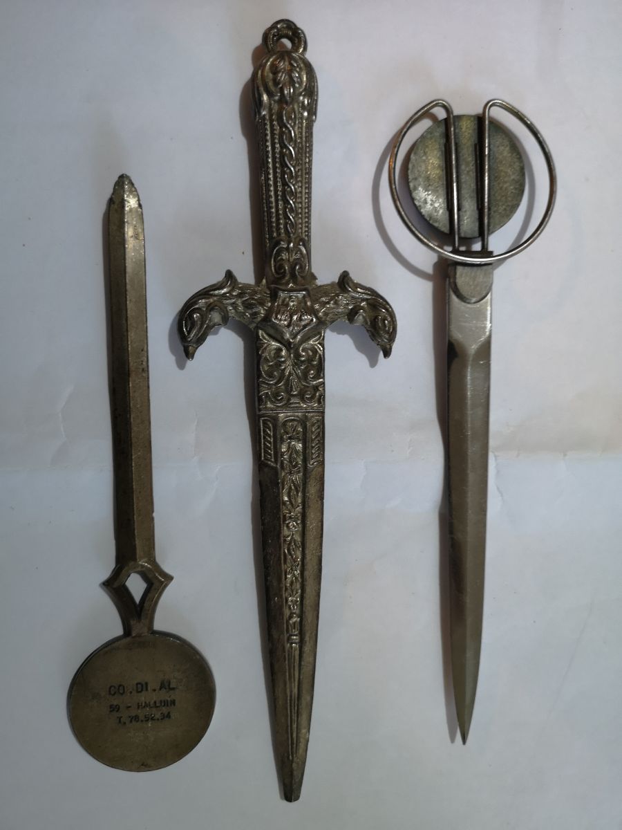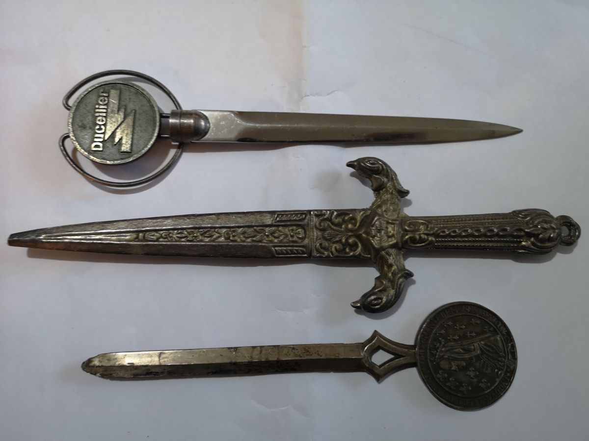 3 coupes papiers métal gravé l'épée pointe cassé 3 mm