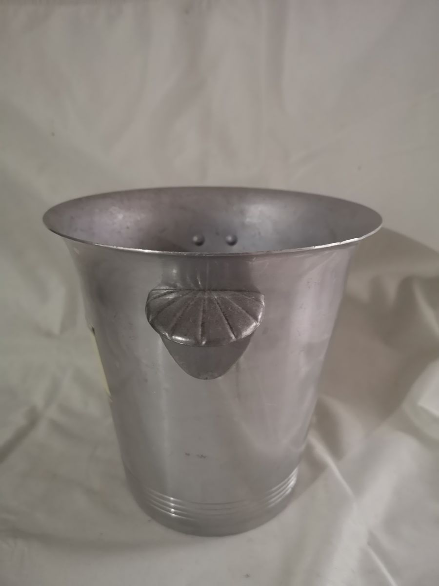SEAU à ,Champagne de marque GRANDIN en aluminium 20 cm de haut et 20 cm de diamètre en alu inoxydable et d'occasion en très bon état