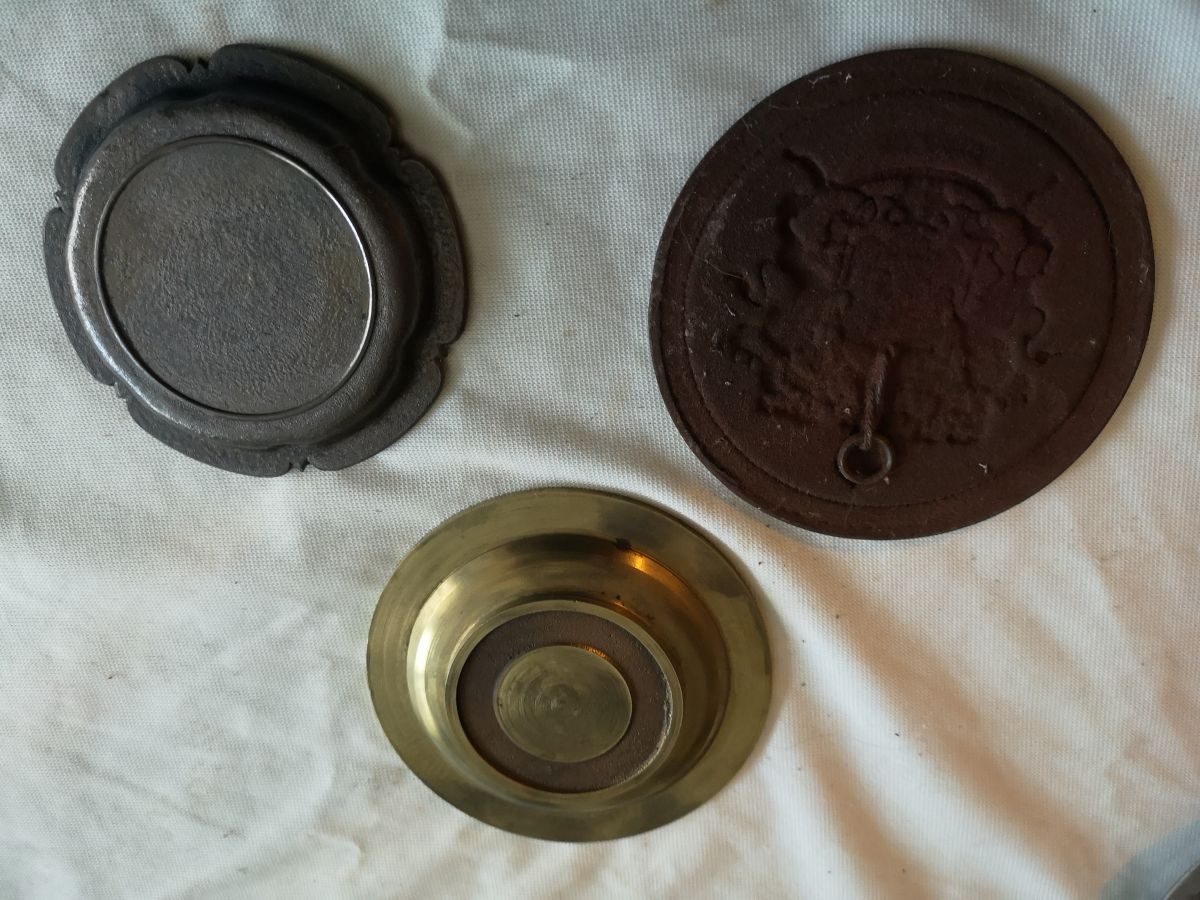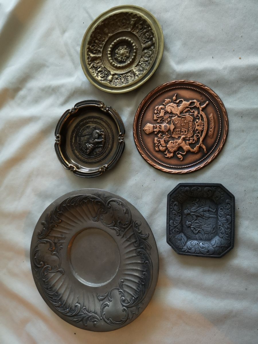 lot de petites Coupellesvides poches anciennes divers thèmes et bronze cuivre étain métal diverses longueurs 18cm 15 cm etc ..