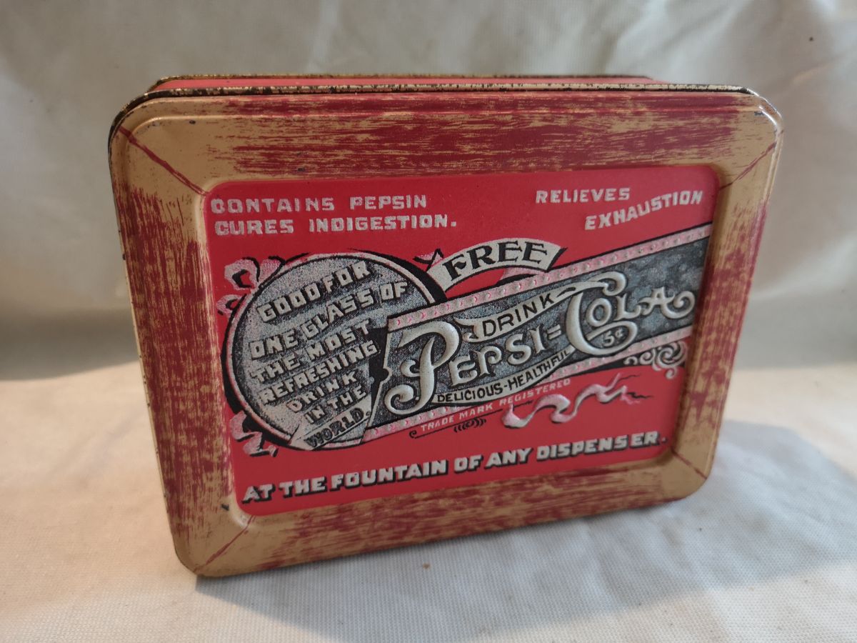 boite métal tole pub Pepsi Cola en Relief format 17 cm de longue 13 cm de large et 6 cm de hauteur en très bon état