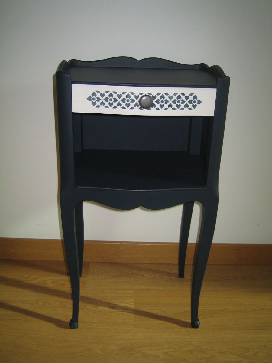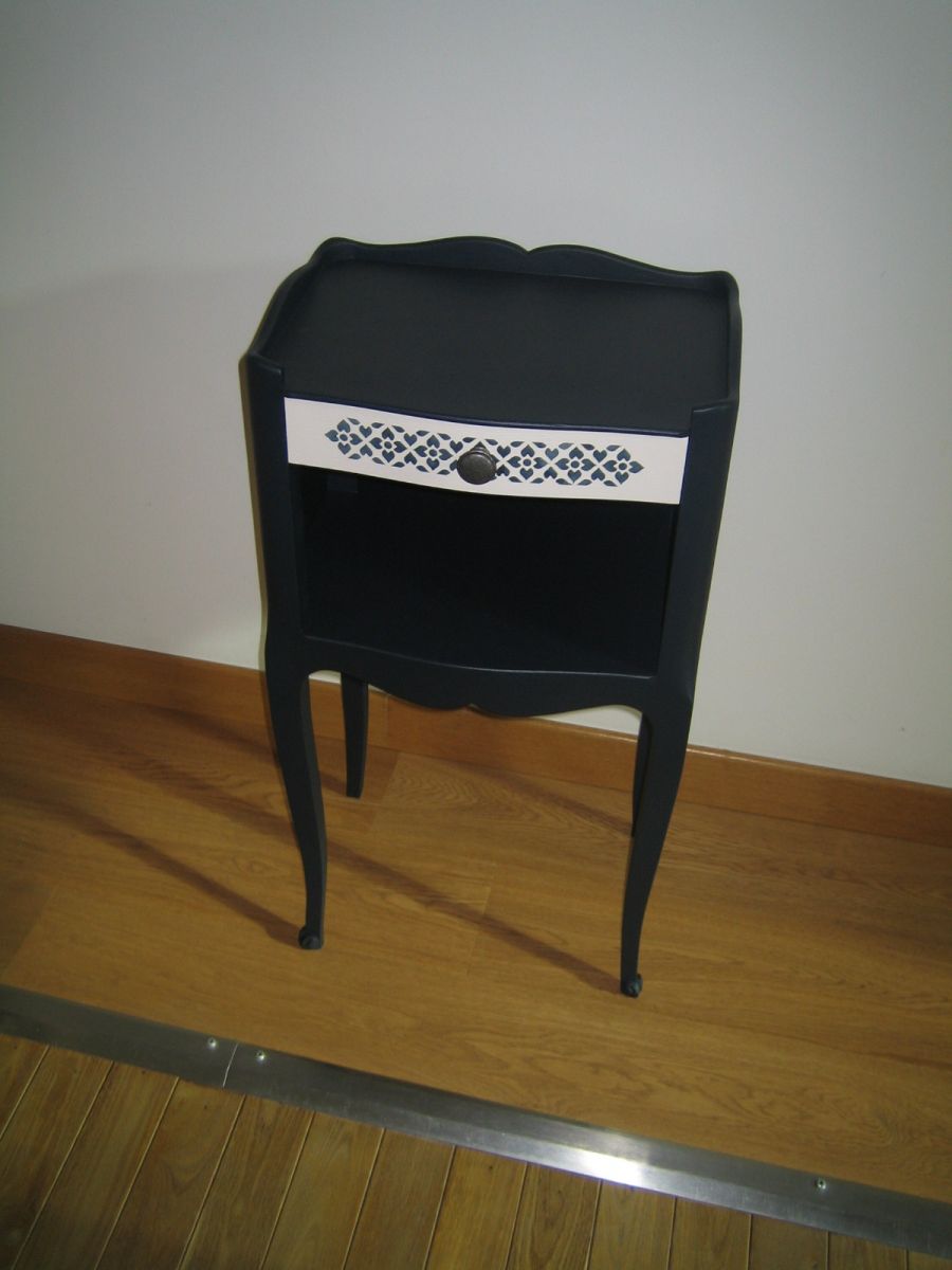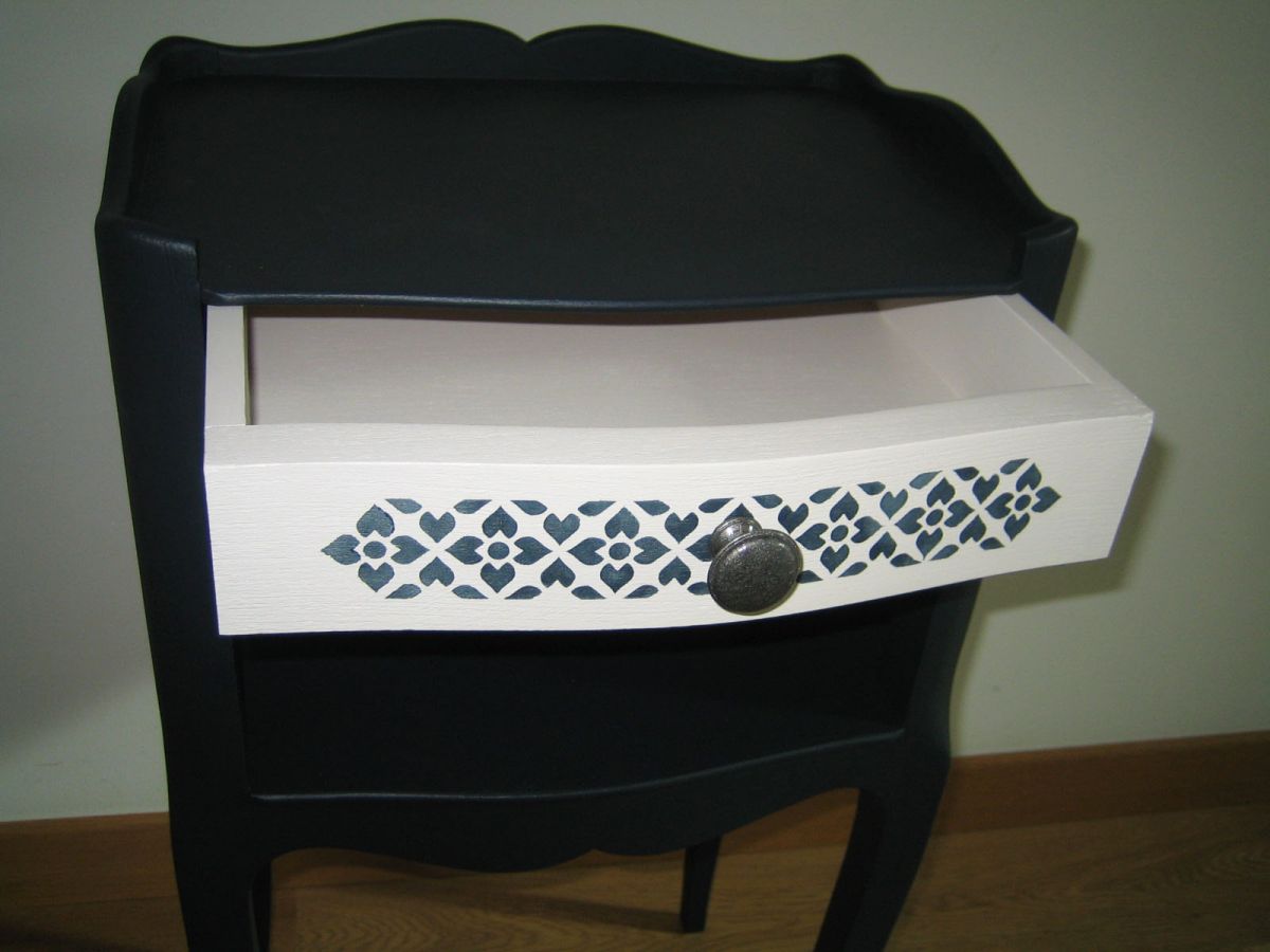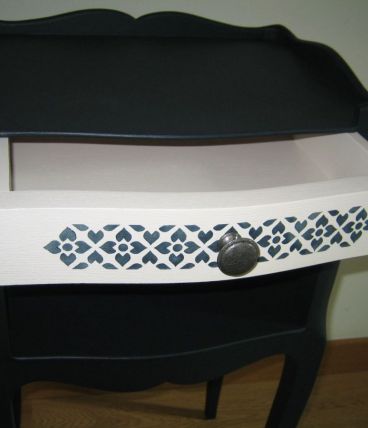 Peinture noire mate bleutée et pochoir sur le tiroir