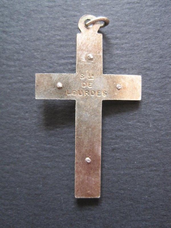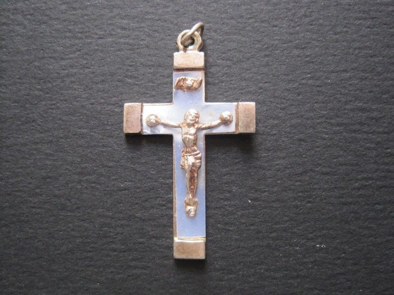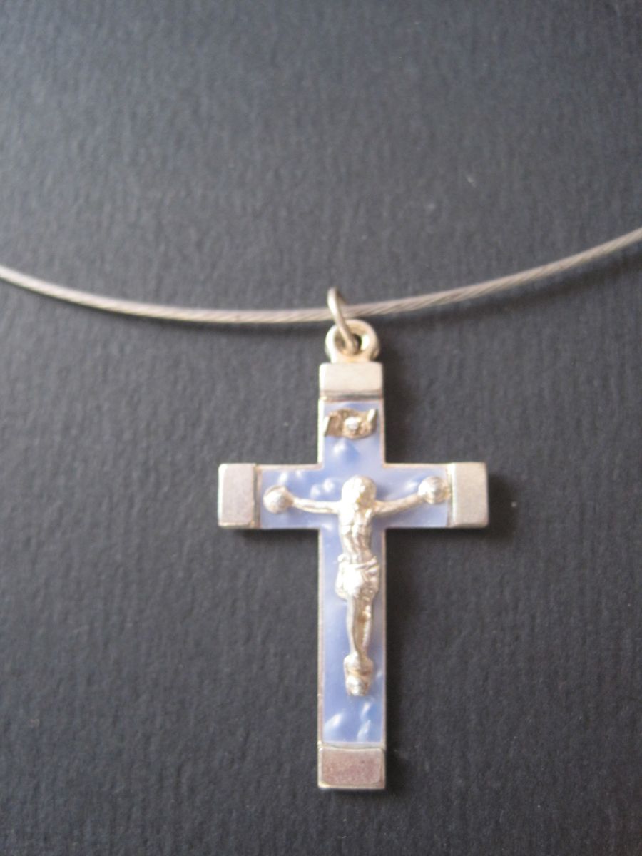 pendentif croix en Métal + Nacro couleur bleu Dimension croix : 39 mm x 22 mm
