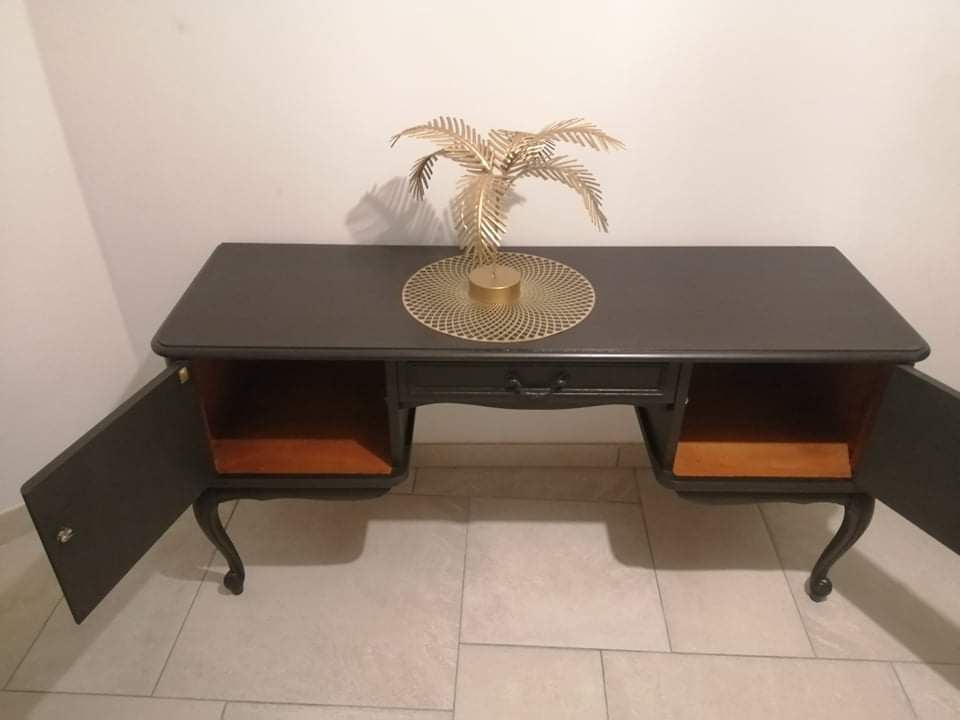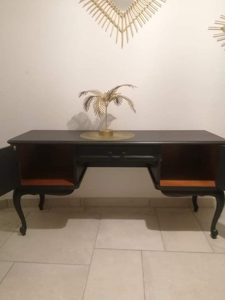 Vend ancien meuble en bois repeint en noir sauf l'intérieur pour garder le charme de l'ancien et du bois. C'est un meuble de qualité NF fabriquer avec les normes françaises. Il mesure 138 sur 45 et 68 de haut.