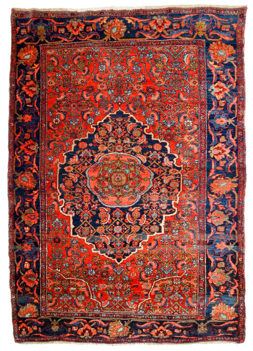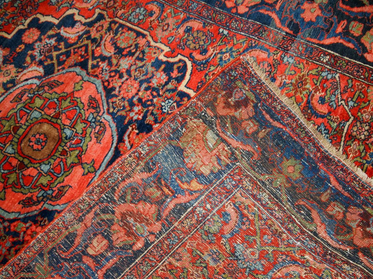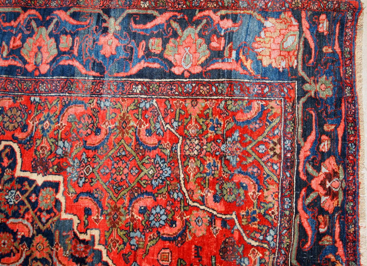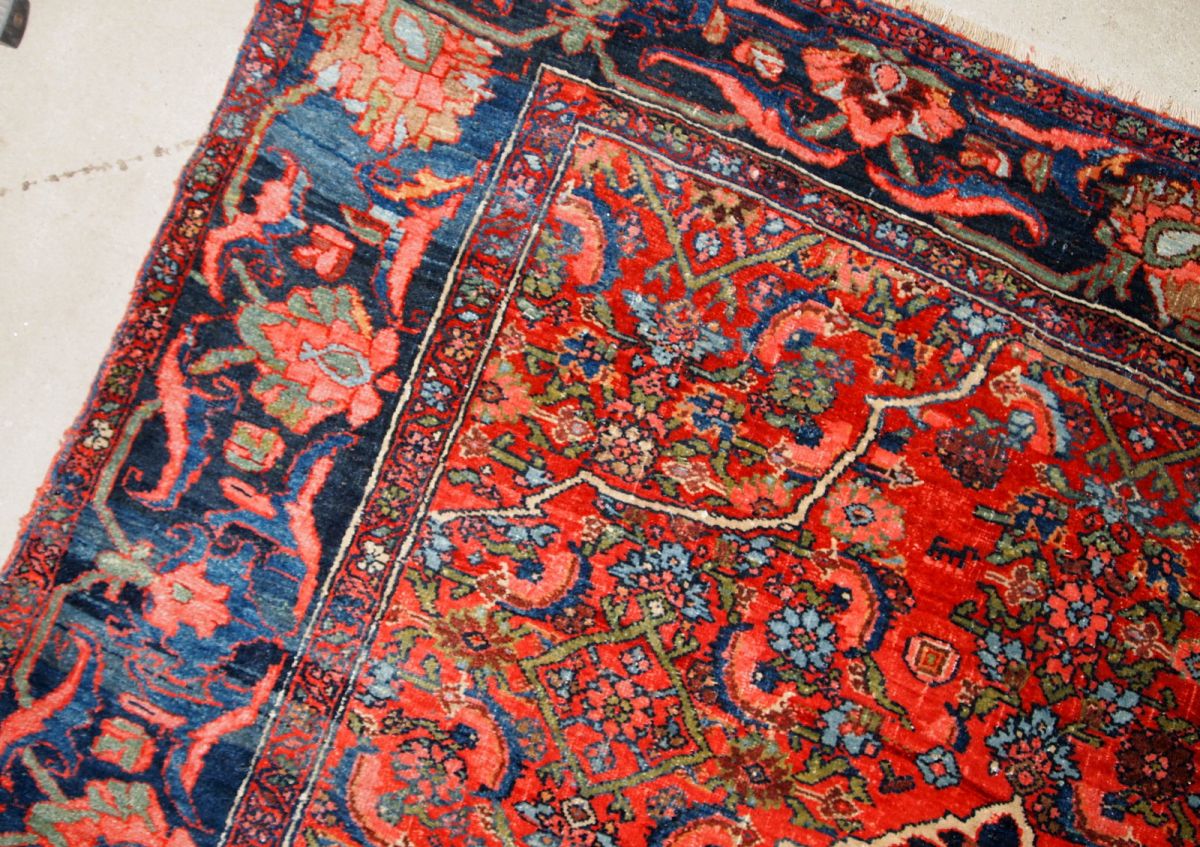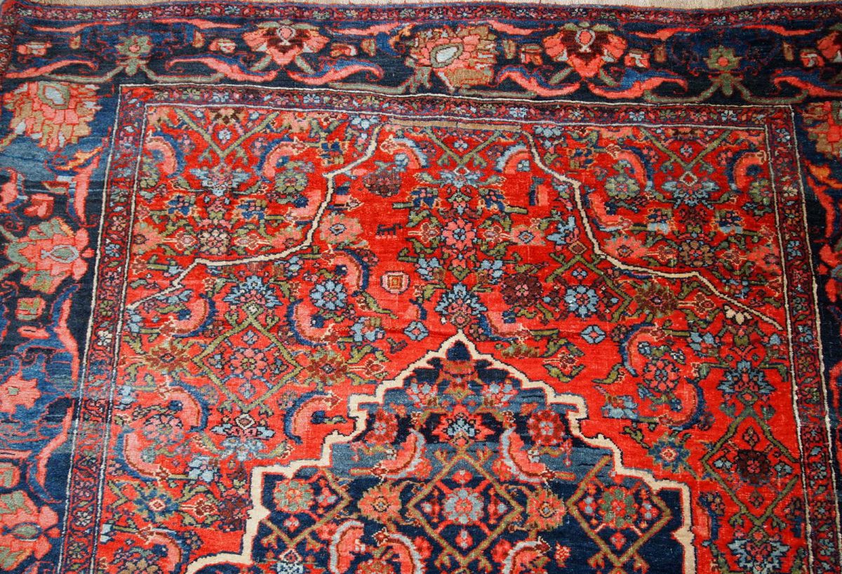 Handmade antique Oriental rug from the beginning of 20th century. The rug is in original good condition made in bright red wool.
