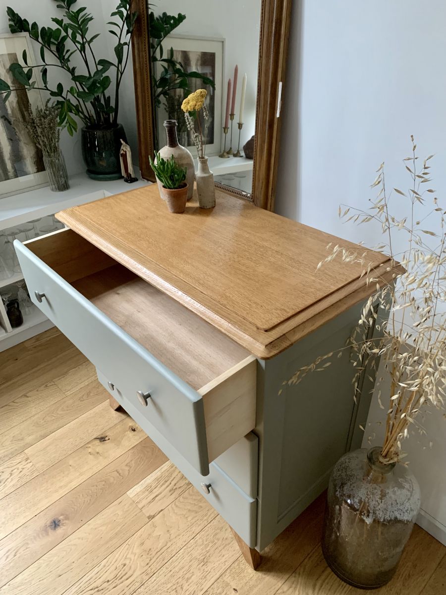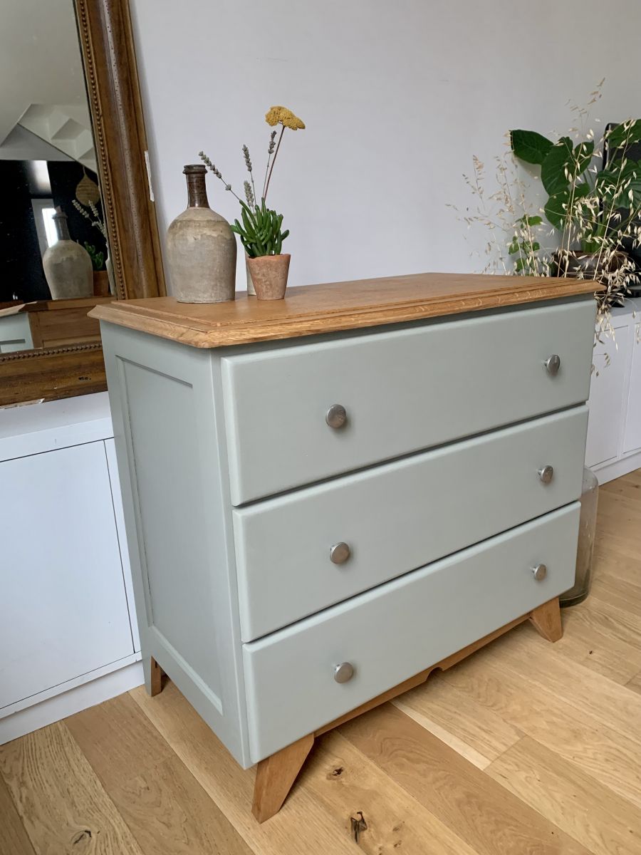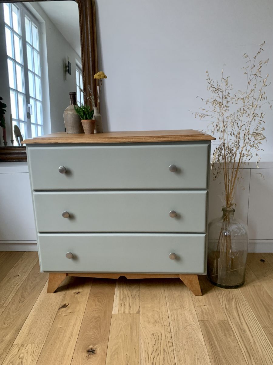 Elle a été mise en beauté avec la douce nuance "Gris chaud" de chez Ressource.
