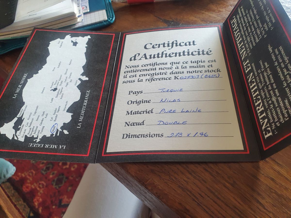 TAPIS Milas pure laine noeud double année 1970 certificat au
