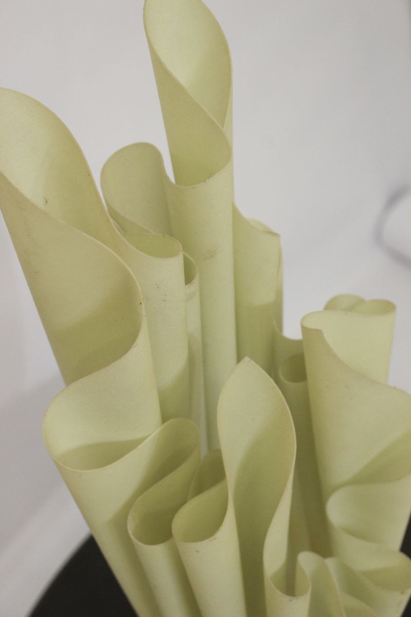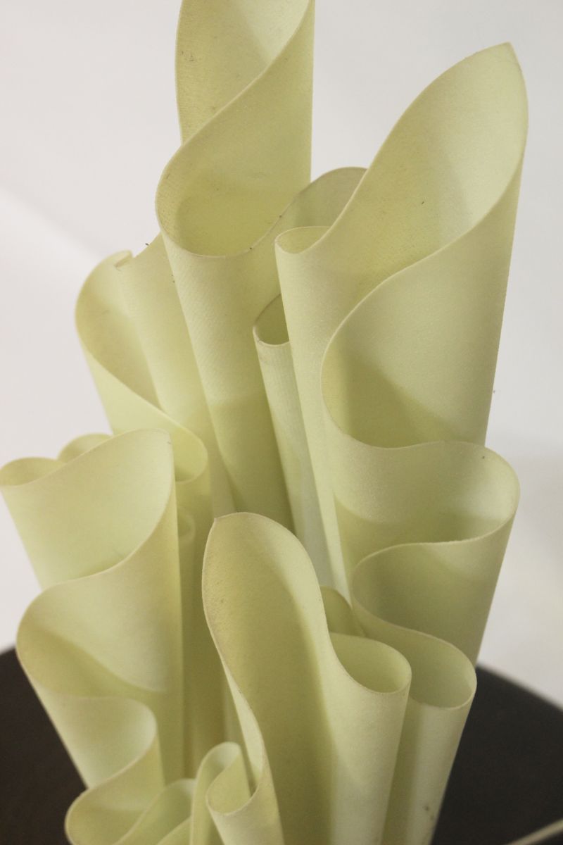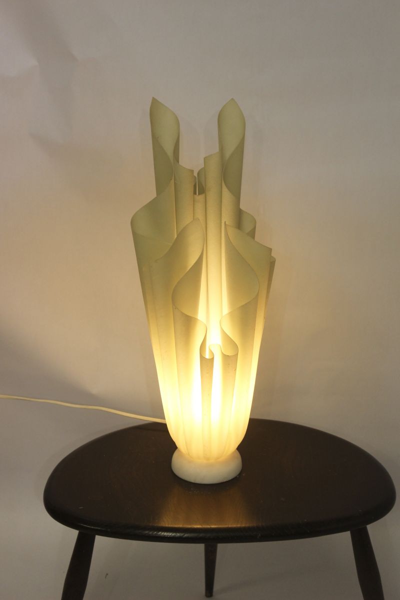 Très belle lampe en résine et pied en marbre, conçue par Georgia Jacob. Modèle Athéna de couleur beige clair. La lampe en résine est impeccable, aucune tache, les pointes et le drapé sont en excellent état. Vendue avec l’ampoule.