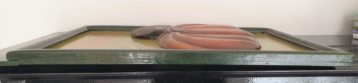 Enseigne bois sculptée relief tableau publicitaire vintage