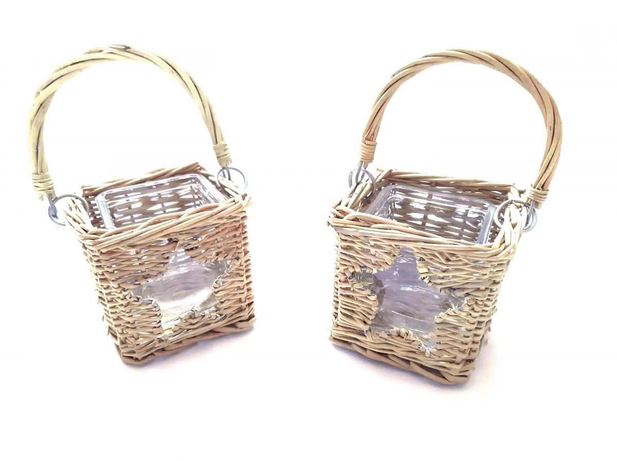 Lot de 2 petit panier/ bougeoir avec contenant en verre, neu