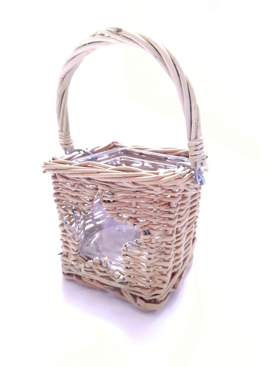 2 petit paniers tressé à la main en fibre végétale couleur naturelle, avec un contenant en verre pour y mettre une bougie. Neuf