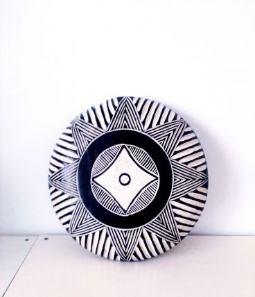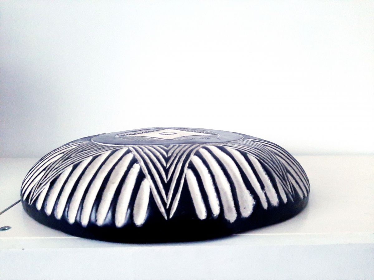 Bouclier traditionnel africain Bamiléké, fabriqué à la main au Cameroun. Peut être accroché au mur en prévoyant une accroche.