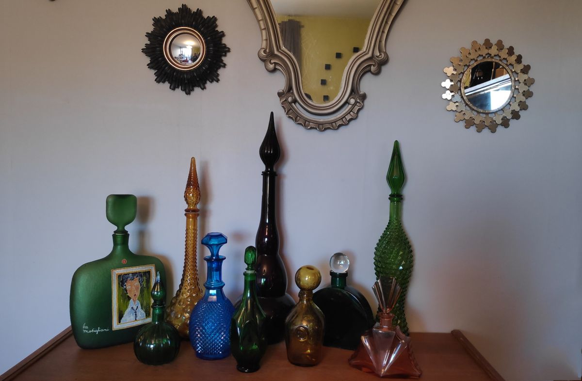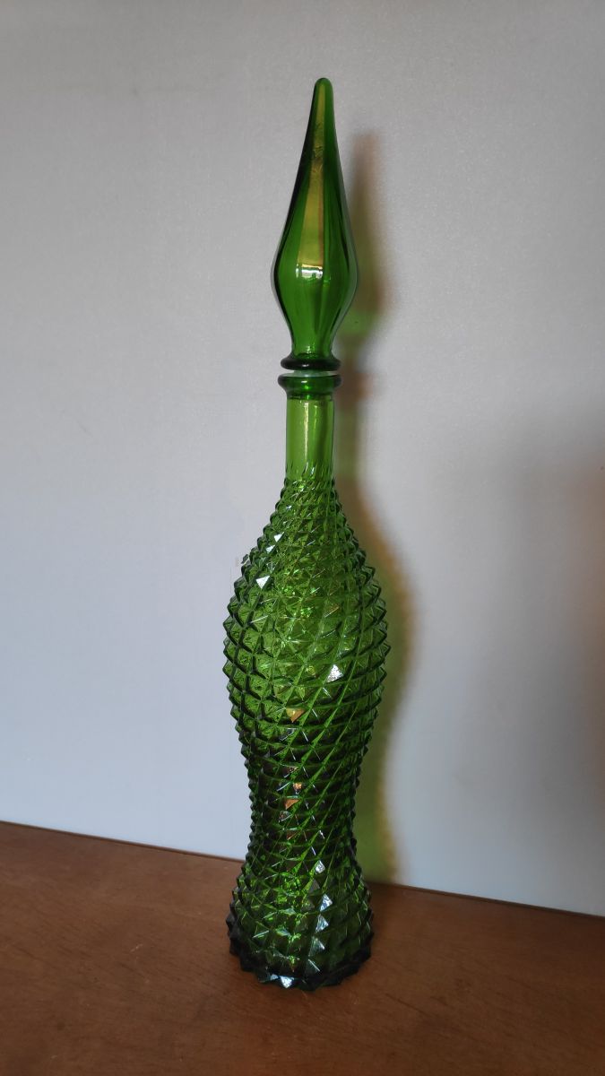 carafe italienne verte pointes de diamant avec bouchon flamme