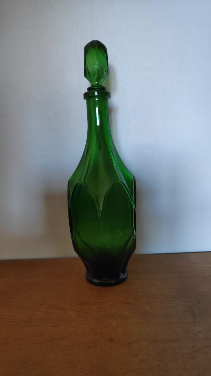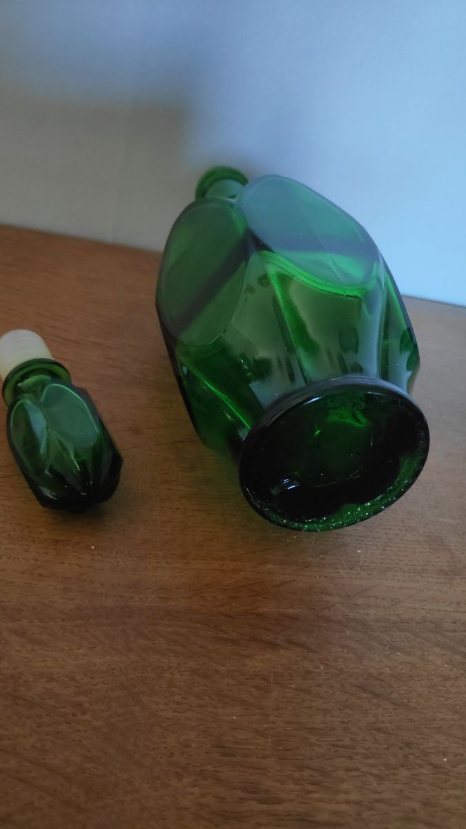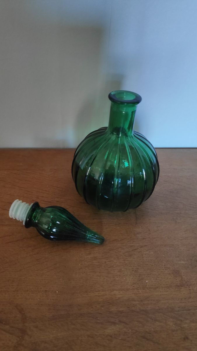 lot de 2 petites carafes vertes en verre avec bouchon d'origine