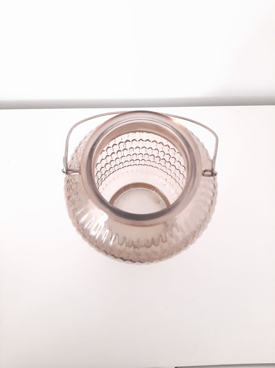 Vase ou bougeoir marron transparent . Hauteur 25cm , diamètre 14cm environ, diamètre ouverture 7,5cm. Quelques traces d'usure
