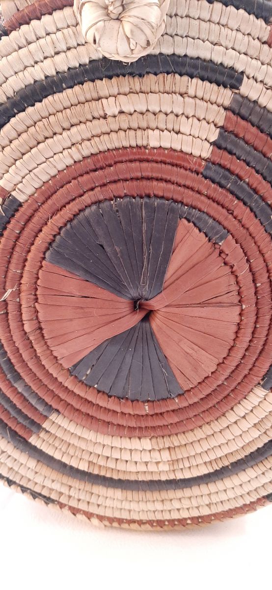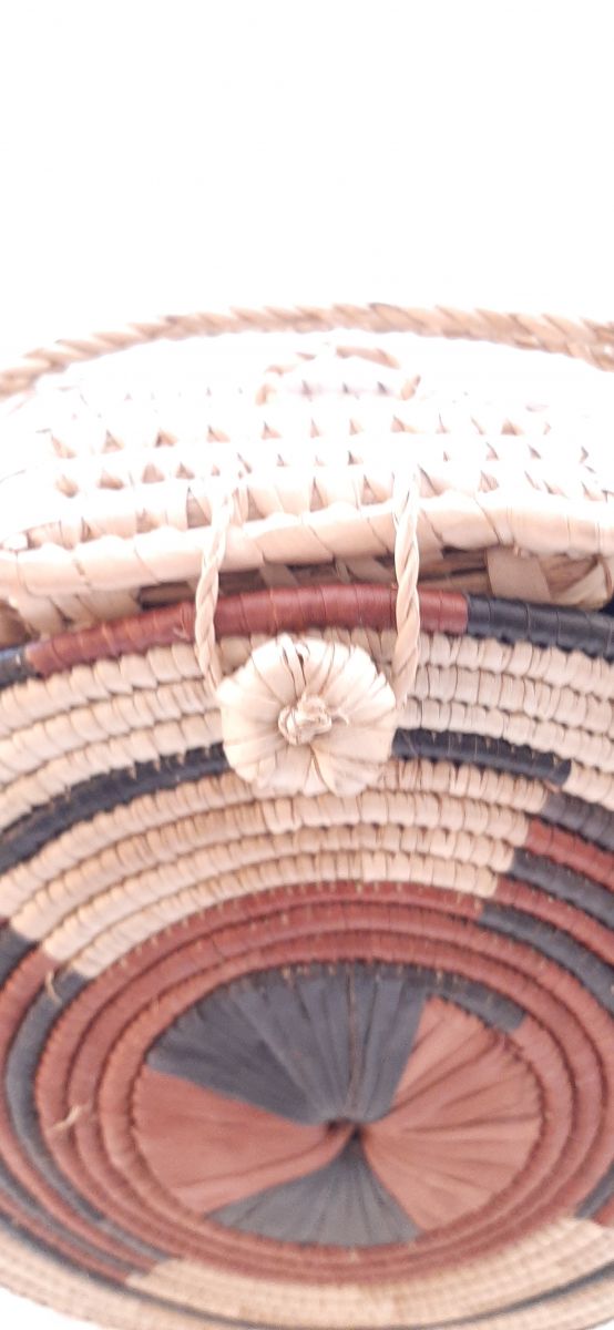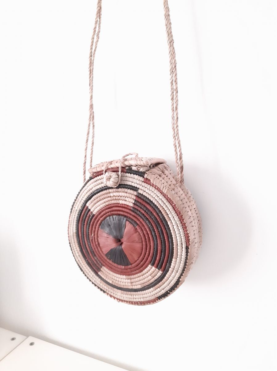 Sac rond Africain rigide, réalisé à la main au Ghana. Coloris fibre naturelle.