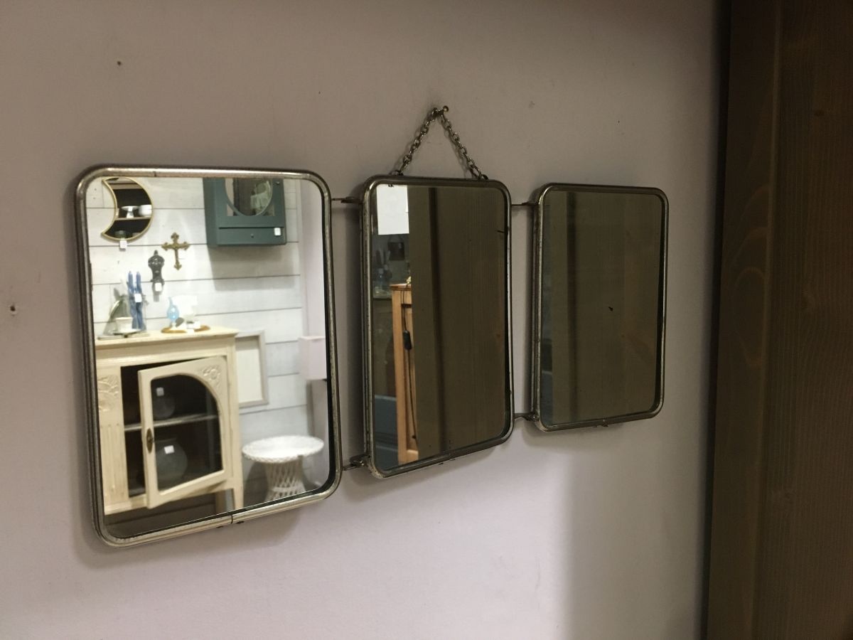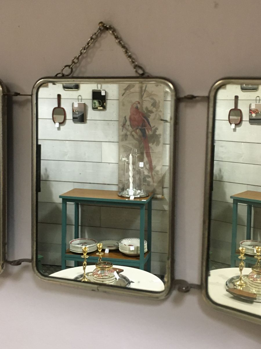 Peu commun dans cette petite taille, ce miroir triptyque de barbier trouvera facilement sa place dans vôtre intérieur.