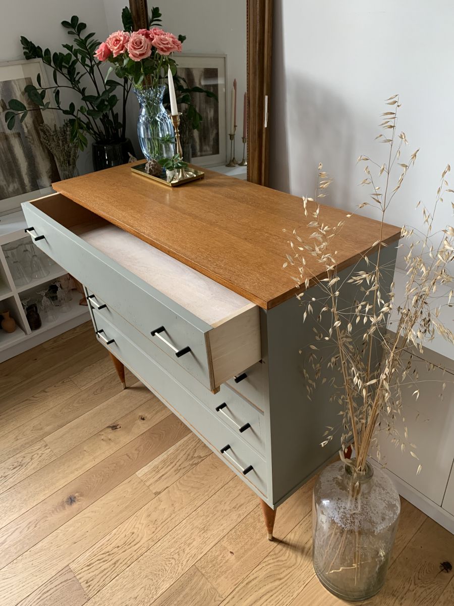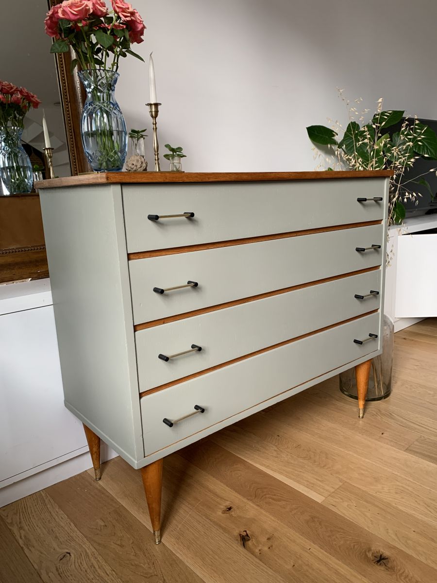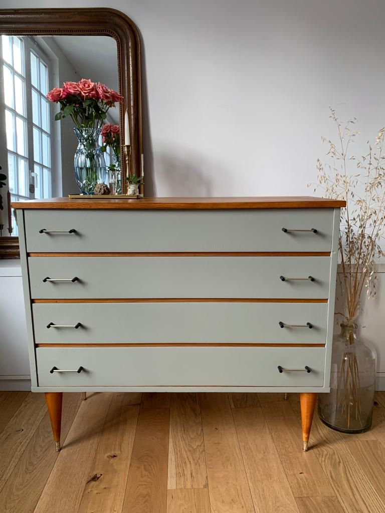Elégante commode des années 50/60 avec de jolis pieds fuseau bout laiton.
