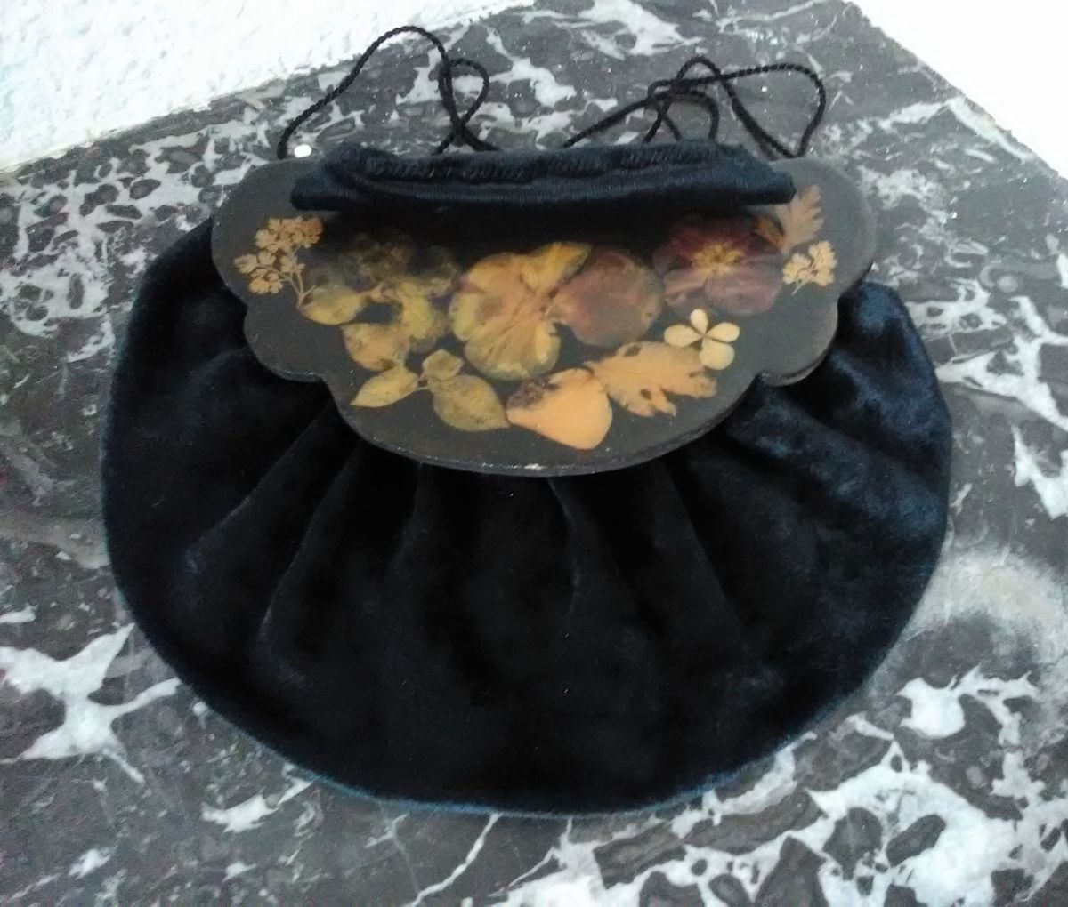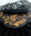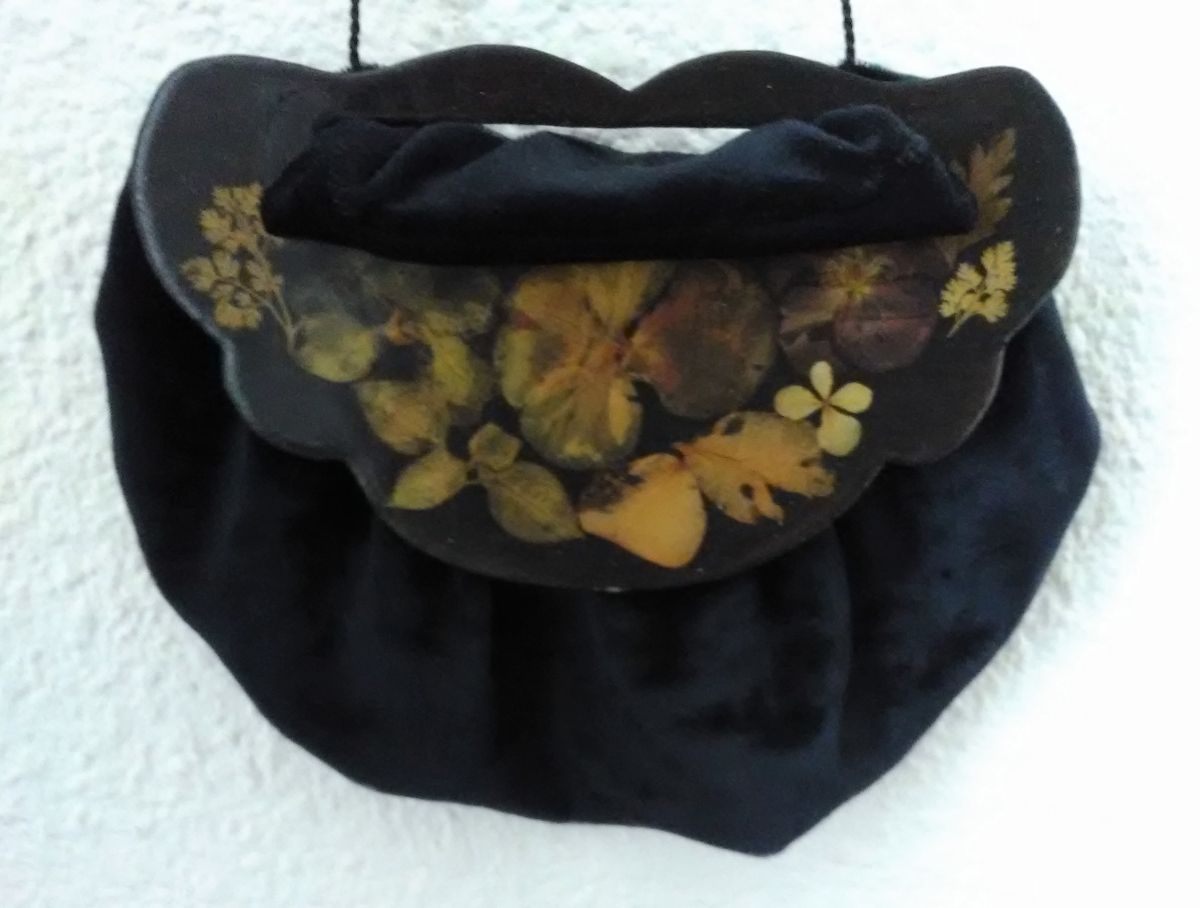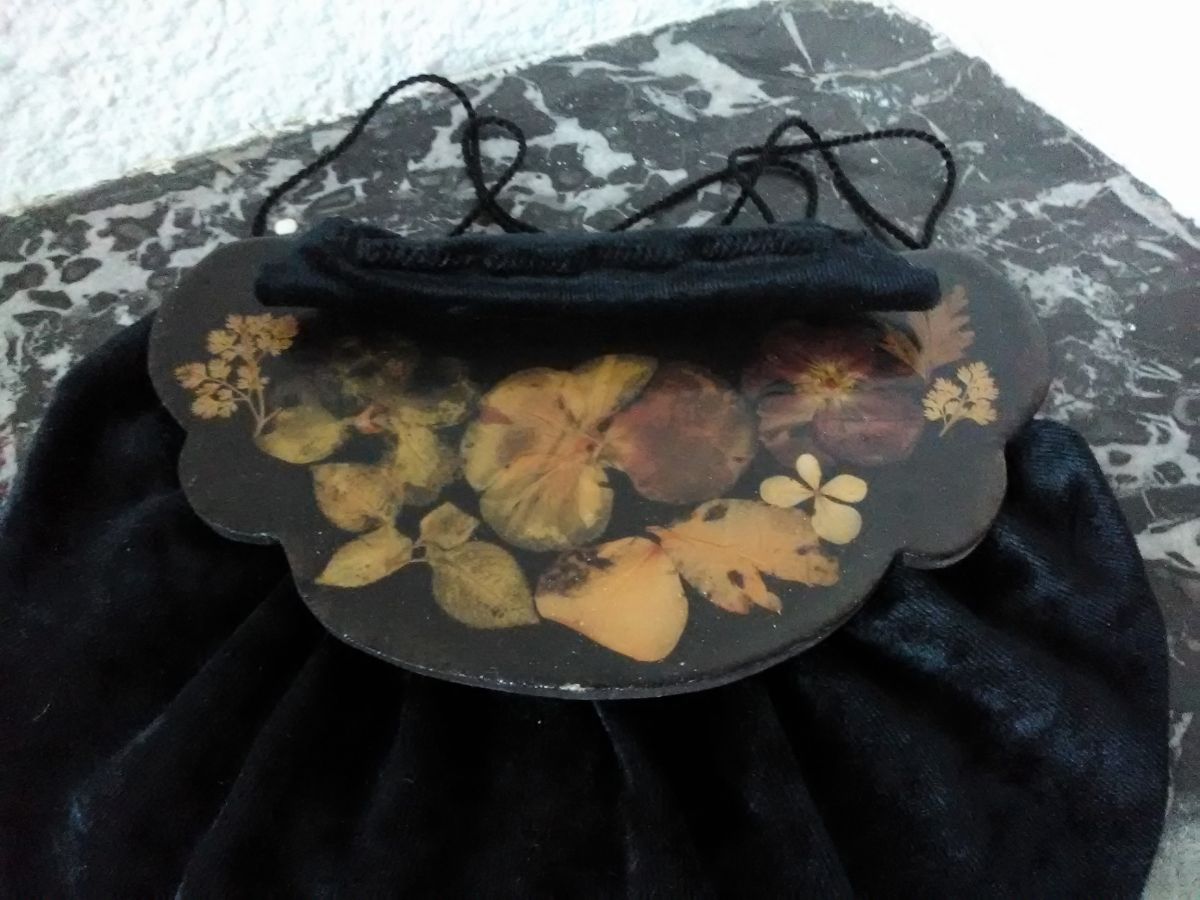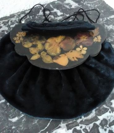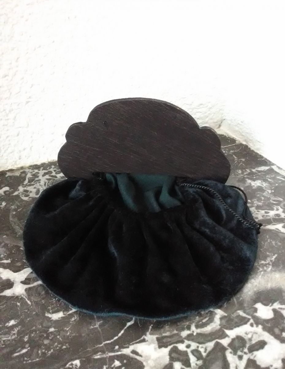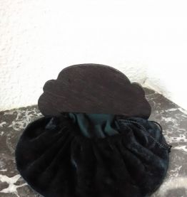 Ancienne aumonière en velours noir et bois