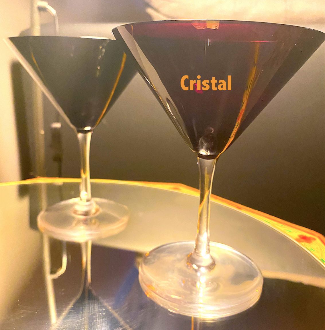 2 verres à martini, cocktail ou champagne en cristal rouge