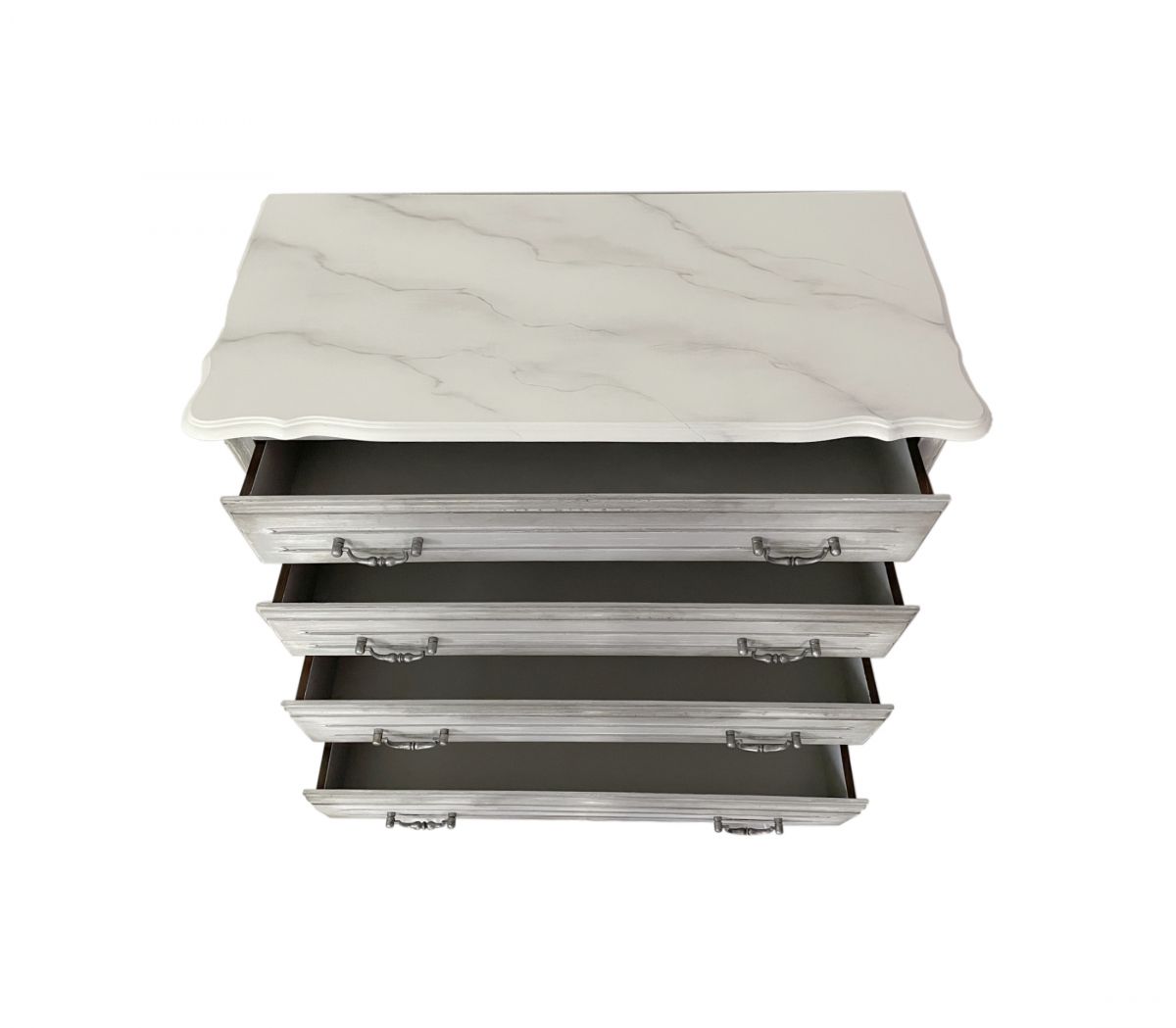Le plateau a reçu un effet faux marbre et scellé avec de nombreuses couches de laque mate dure.