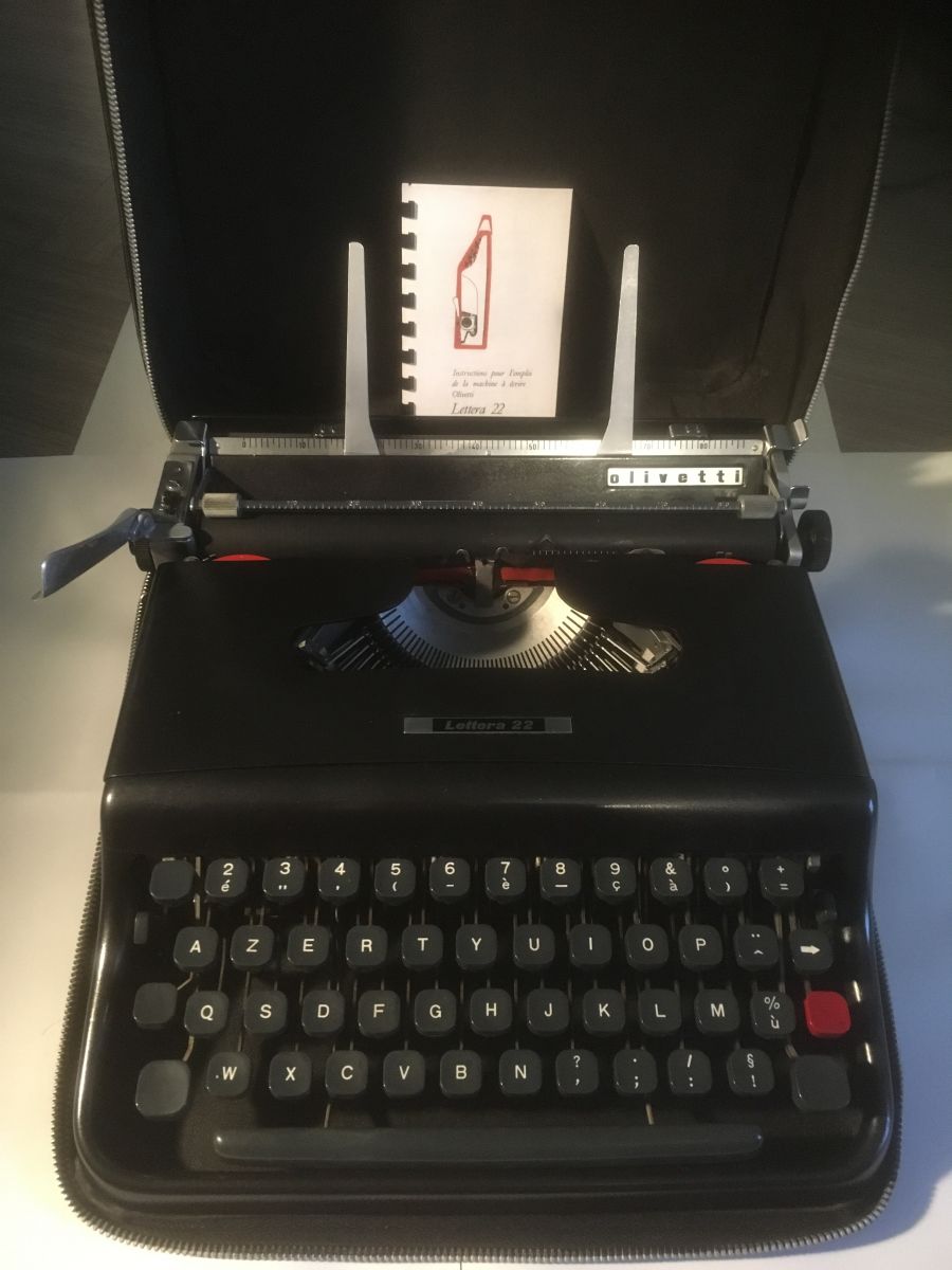 Exceptionnelle machine à écrire Olivetti Lettera 22 de couleur noire. Elle est en parfait état de fonctionnement avec un ruban d’encre noir et rouge neuf. De plus la machine est dans sa belle valise noire. Même le manuel d’utilisation est fourni ! Cet ensemble coute normalement entre 800 et 1200 euros. Belle affaire à saisir donc, surtout en cette période de cadeaux ! Vous allez épater vos amis avec ce bijou vintage…