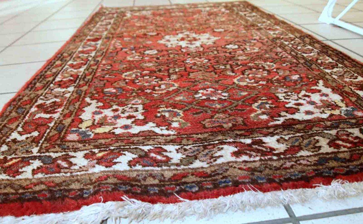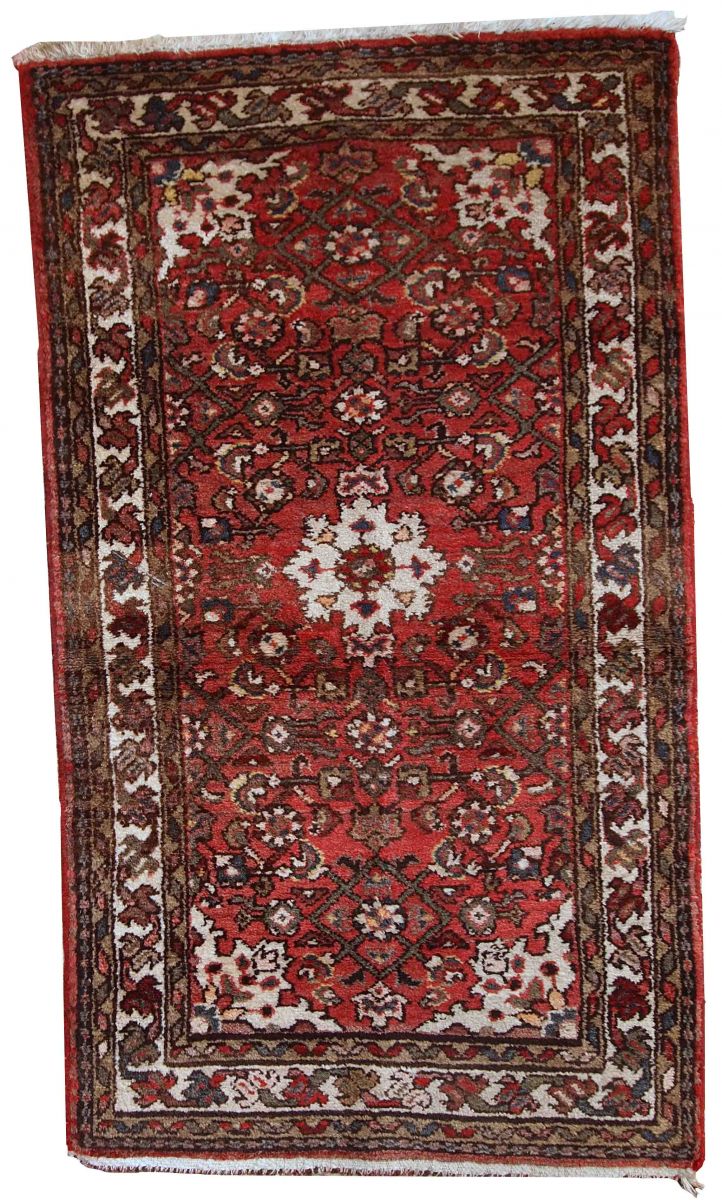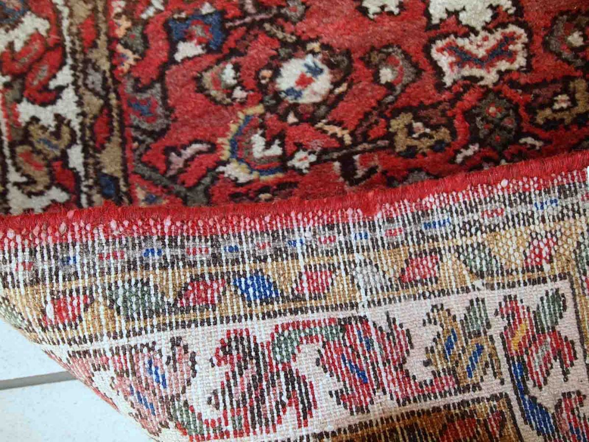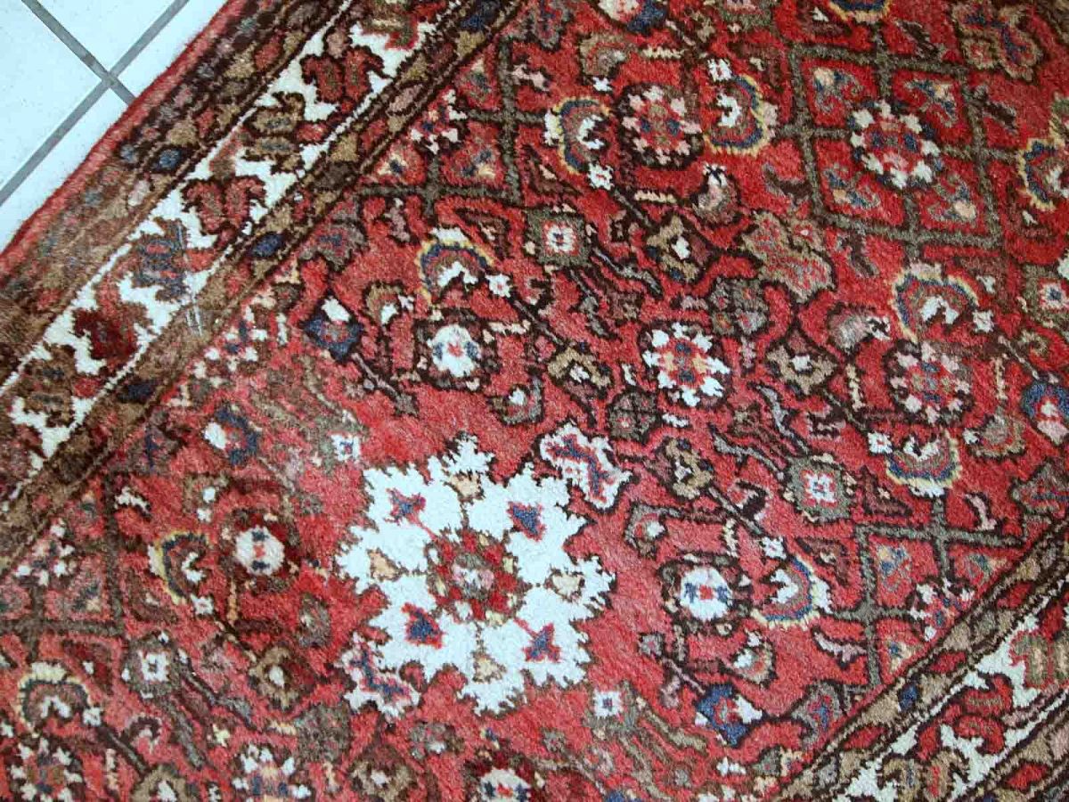 Vintage Hamadan rug in good original condition. The rug is from the middle of 20th century made in red wool.