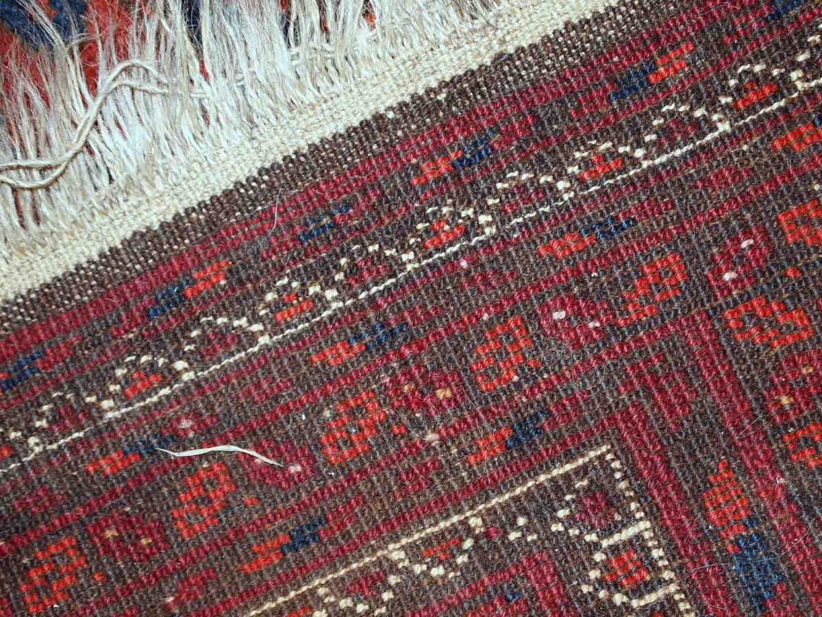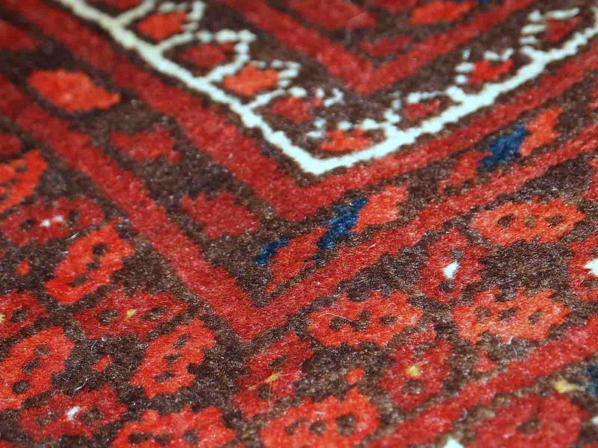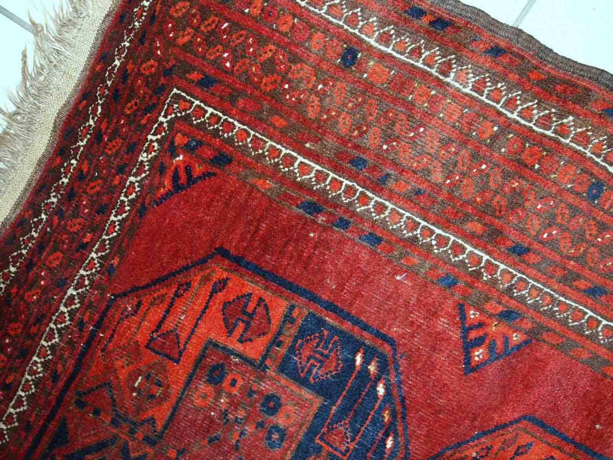 Antique Afghan Ersari rug in original condition, it has some low pile. The rug is from the mid 20th century made in red wool.