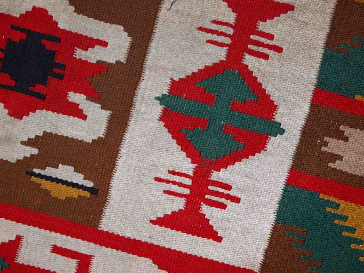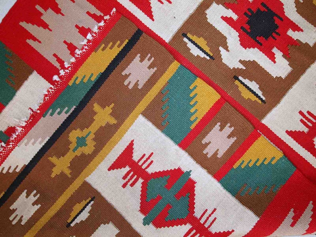 Handmade vintage Turkish Anatolian kilim in bright shades. The condition is original, some signs of age.