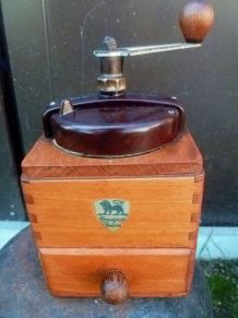 Moulin à café ancien Peugeot Frère en bois et en état de fonctionnement. (voir photo ) Hauteur 23cm