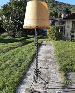 Un vrai bijou cette lampe en fer forge, actuellement tres a la mode. L’abat-jour est typique des annees soixante.