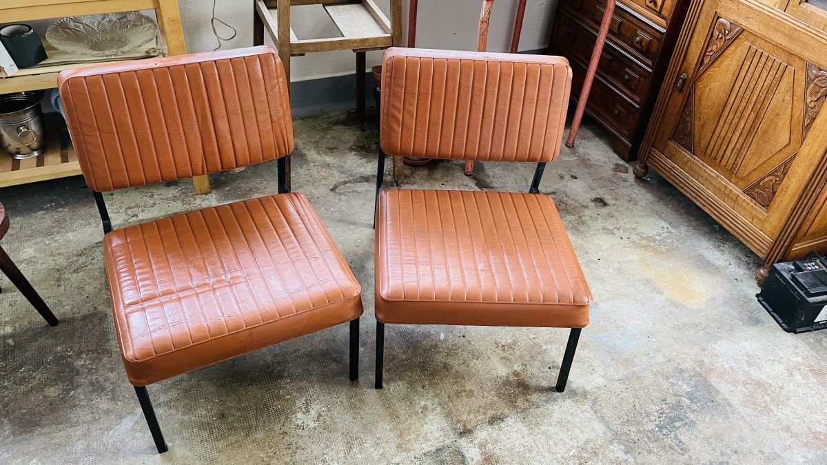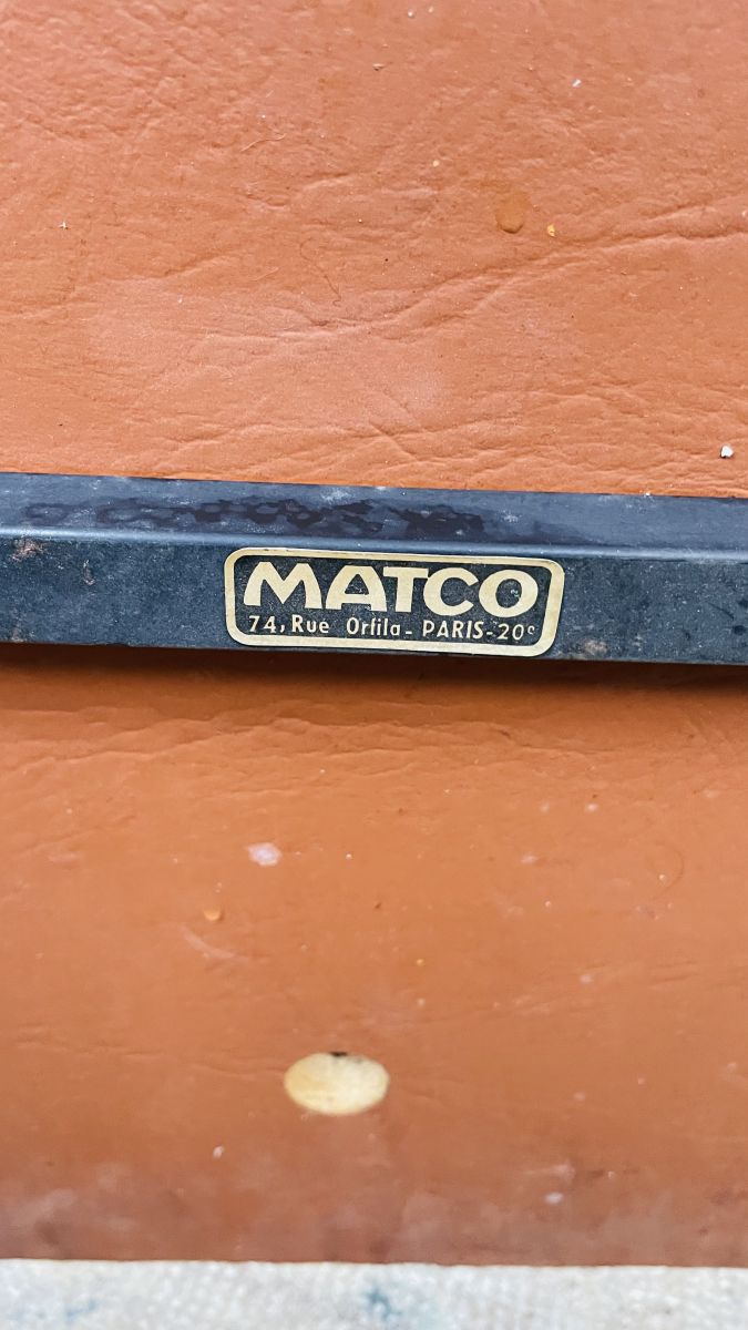 Fabriqué par Matco Paris, ce sont des fauteuils bas à structure tubulaire. Assise et dossier recouvert en Skaï, à l’aspect rainuré.