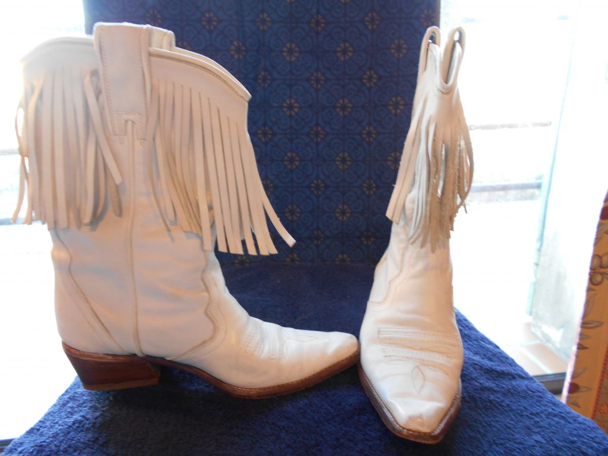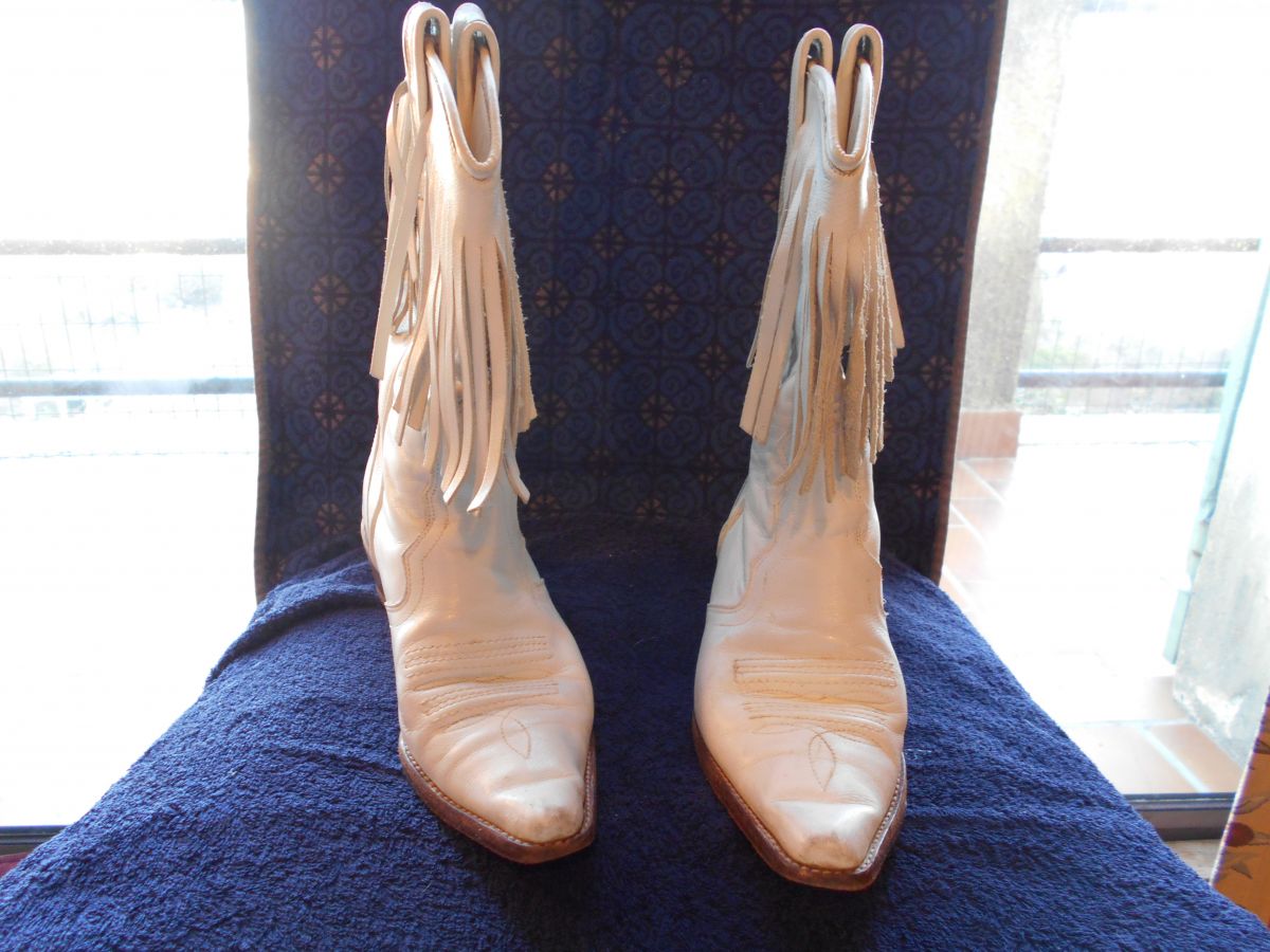BOTTES DE COW BOY T 36 BLANC CUIR VINTAGE TBE