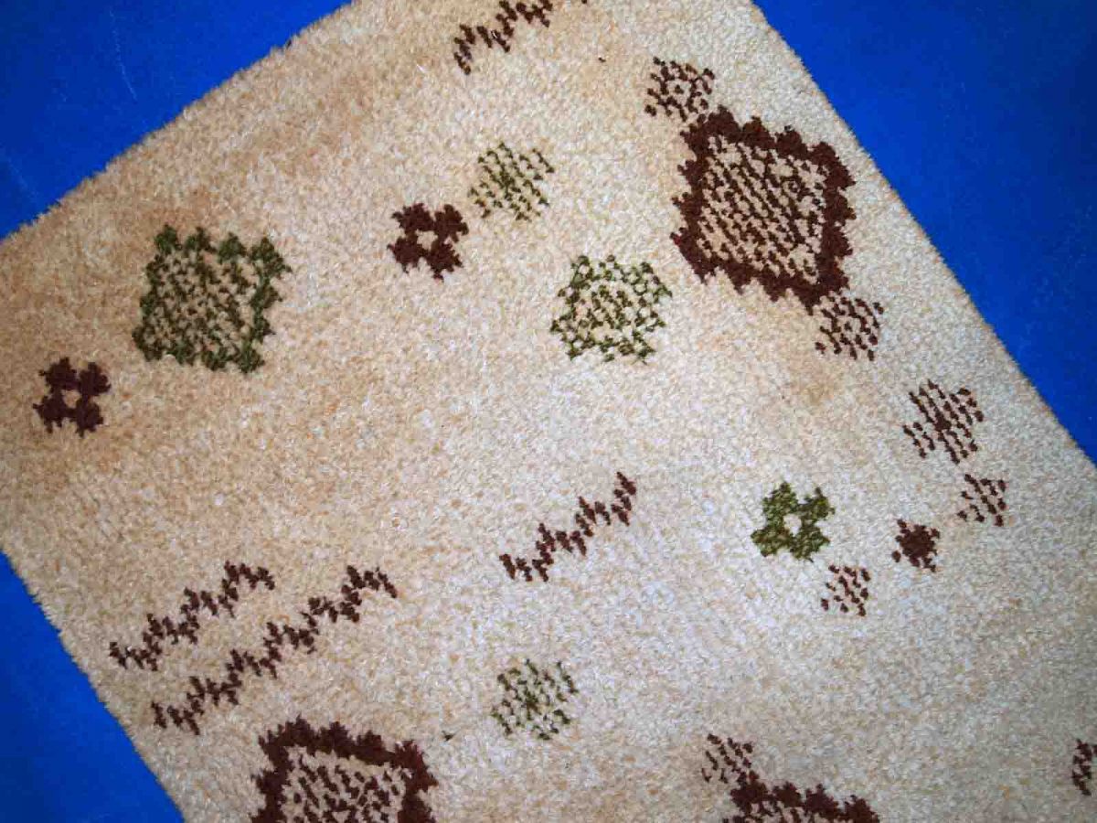 Vintage machine made rug in Moroccan Berber design. The rug is from the end of 20th century made in wool.