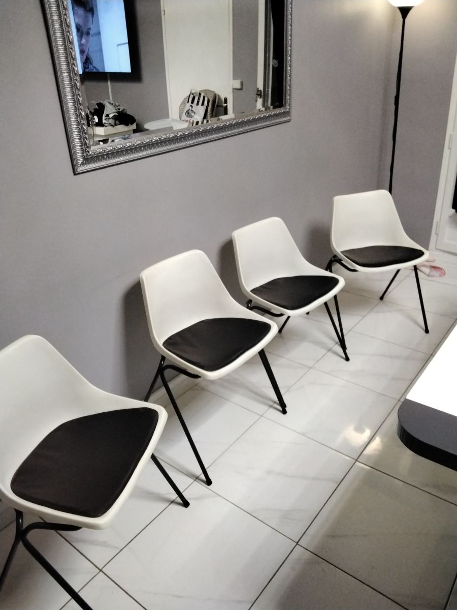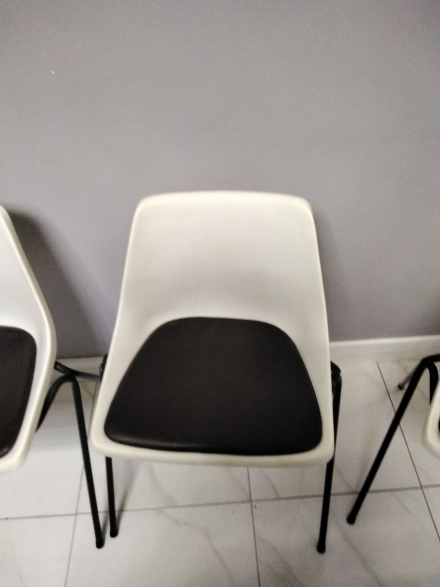 Lot de chaise vintage lafargue état neuf beige et marron empilage 4 pieces pas d'envoi désigner allemand