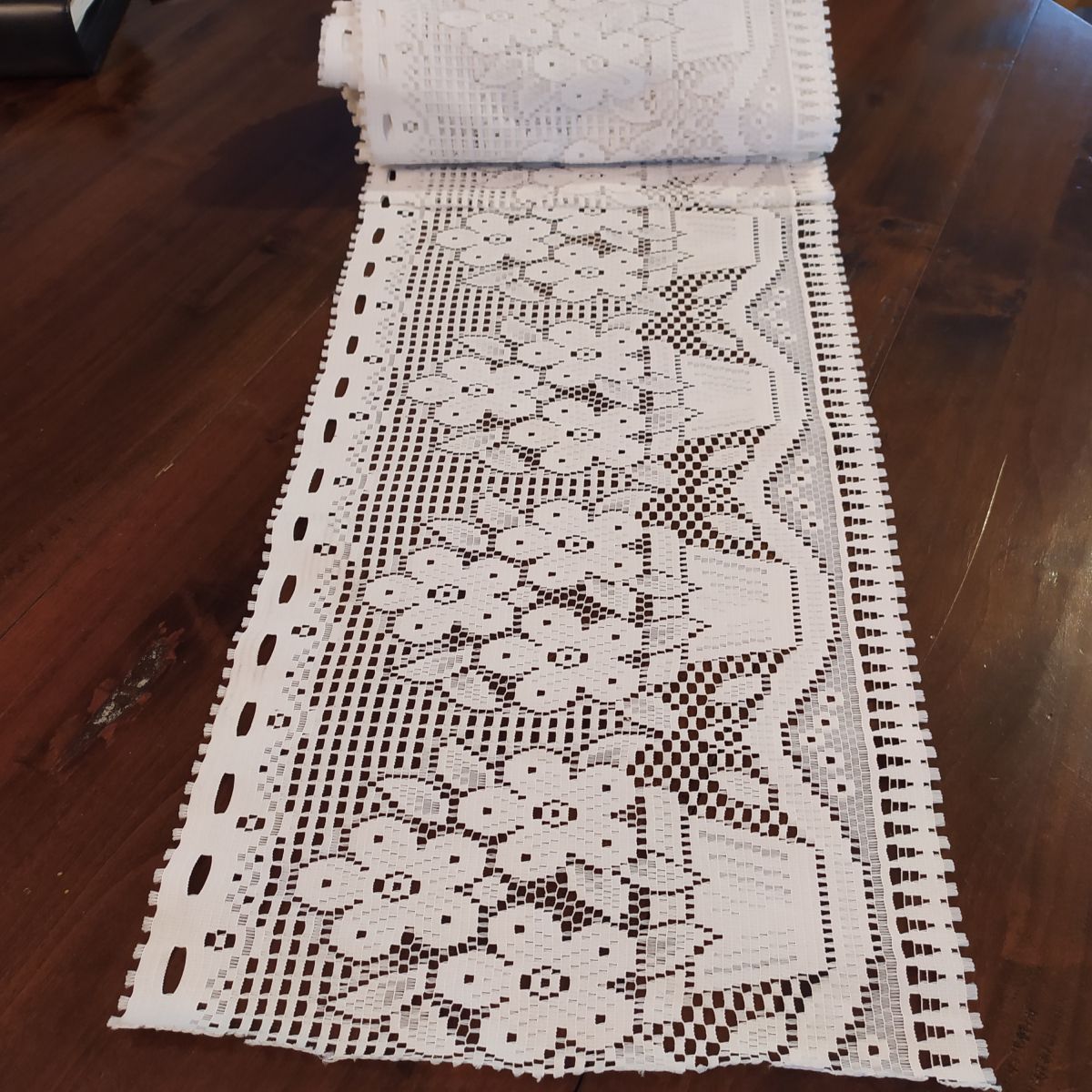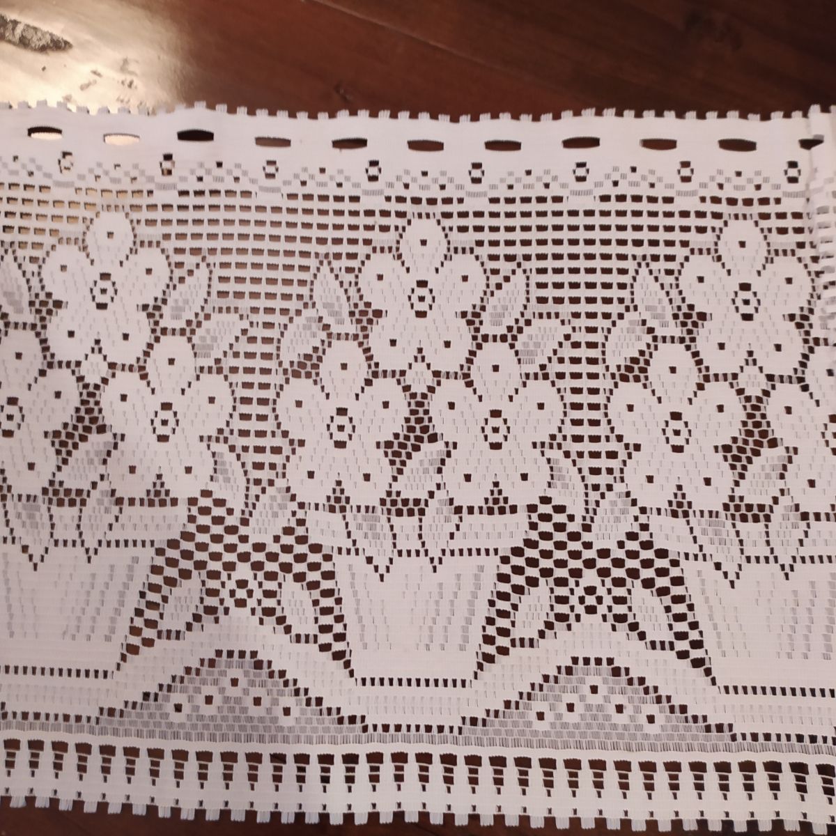 Neuf, jamais posé, 5 m de rideau dentelle blanche, prêt à poser (voir photo) pour faire plusieurs rideaux haut ou bas de fenêtres. Hauteur 31 cm
