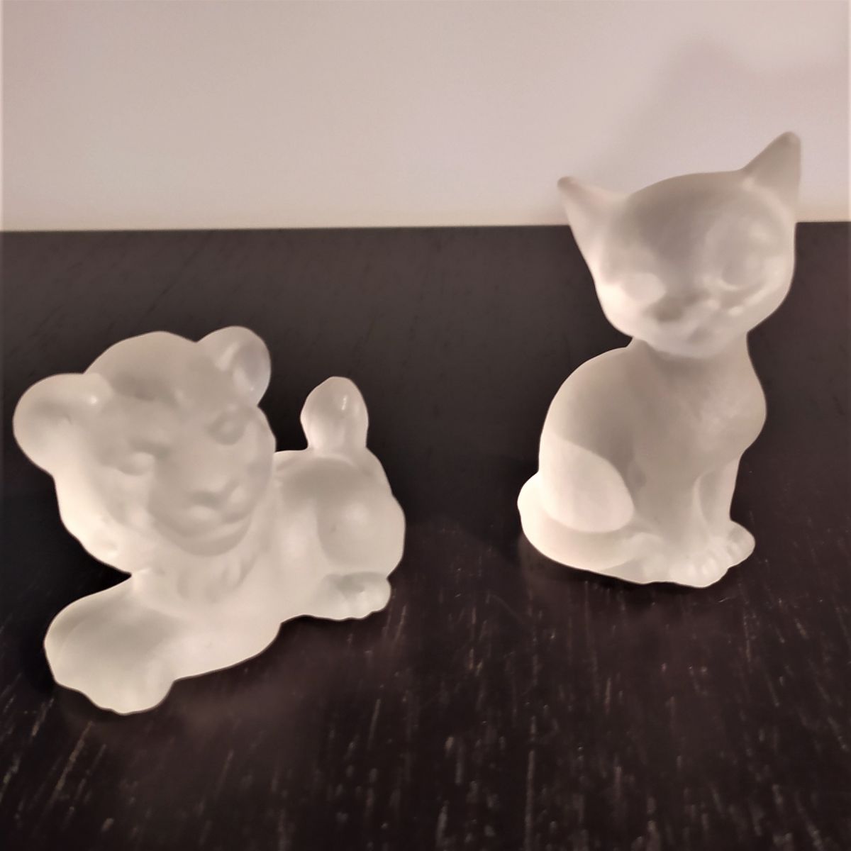 un lot de chaton et lionceau en pâte de verre moulé satiné (voir photo) en très bon état.