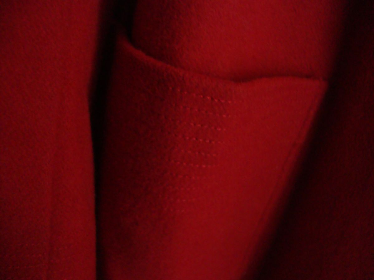 longueur 82 épaules 40 entre aisselles 50 double boutonnage noir 2 grandes poches plaquées, petit col rond, doublure noire, bordures col, manches , poches avec surpiqûres long soufflet dans le dos