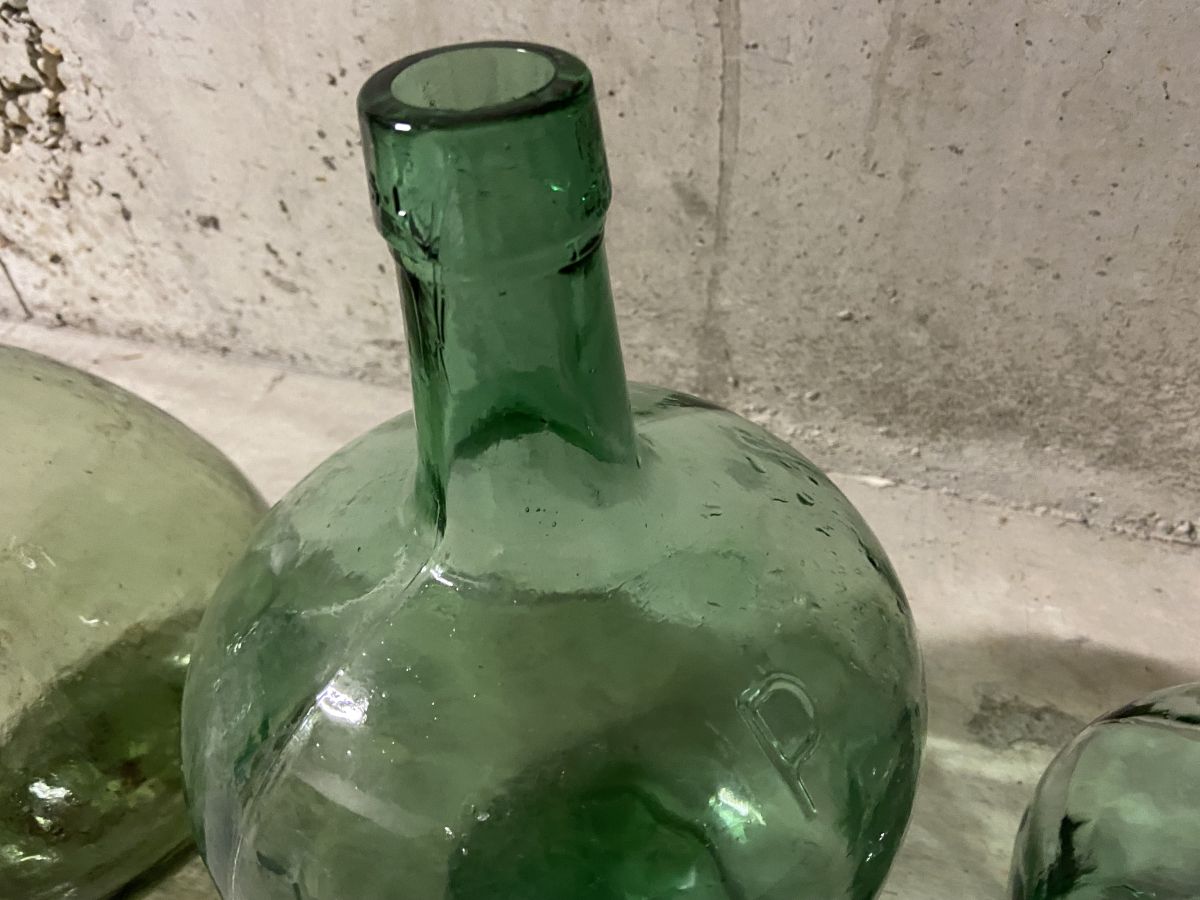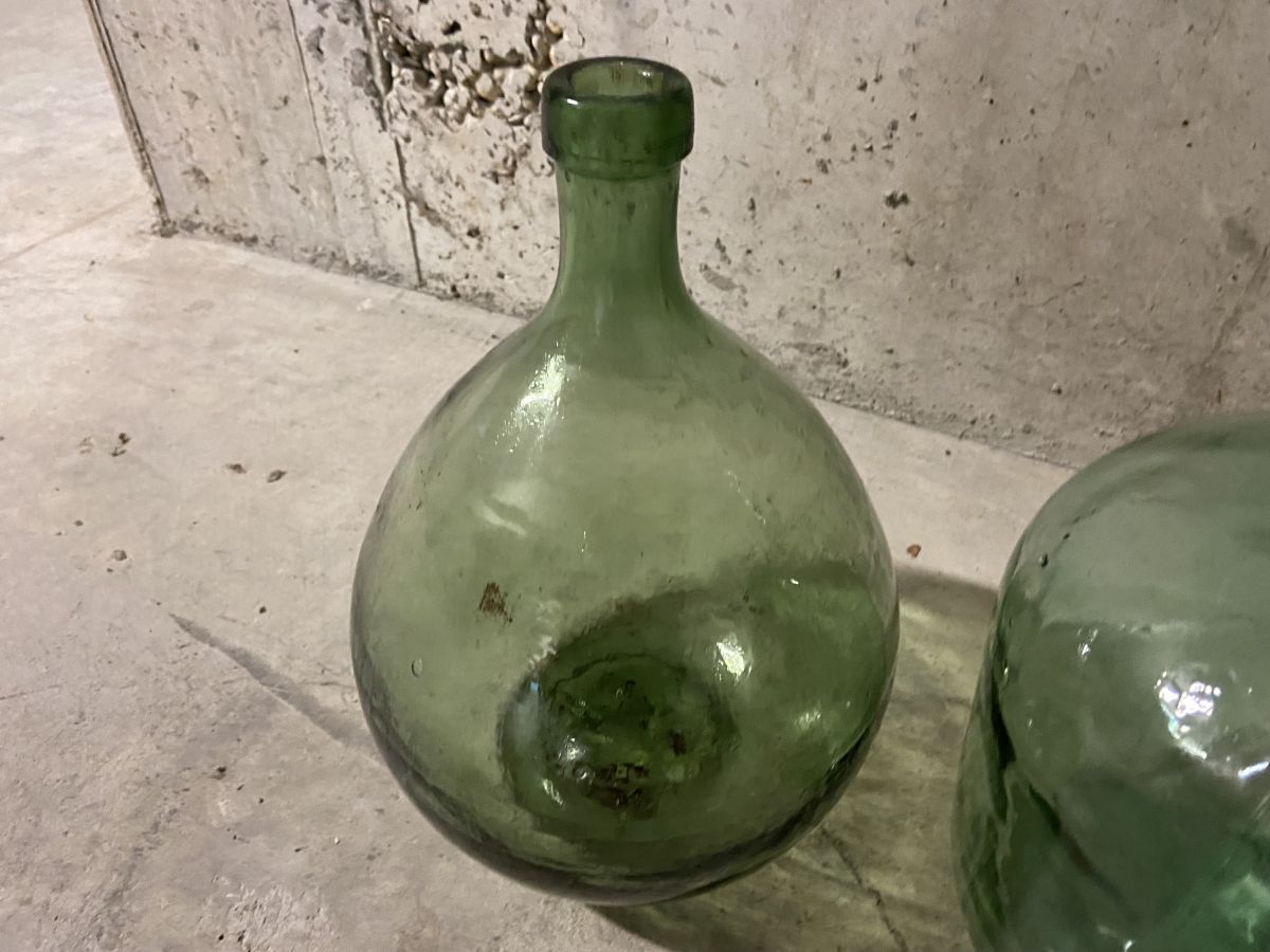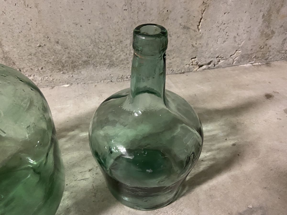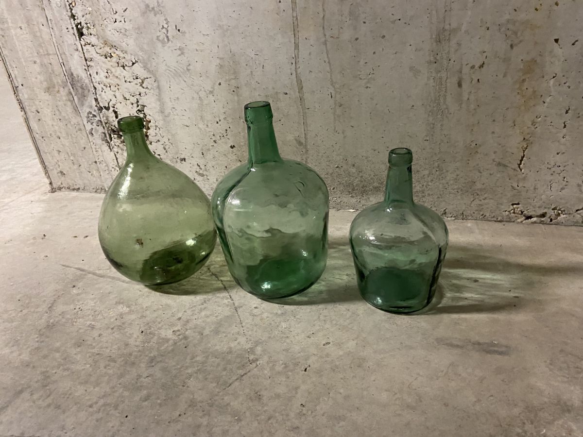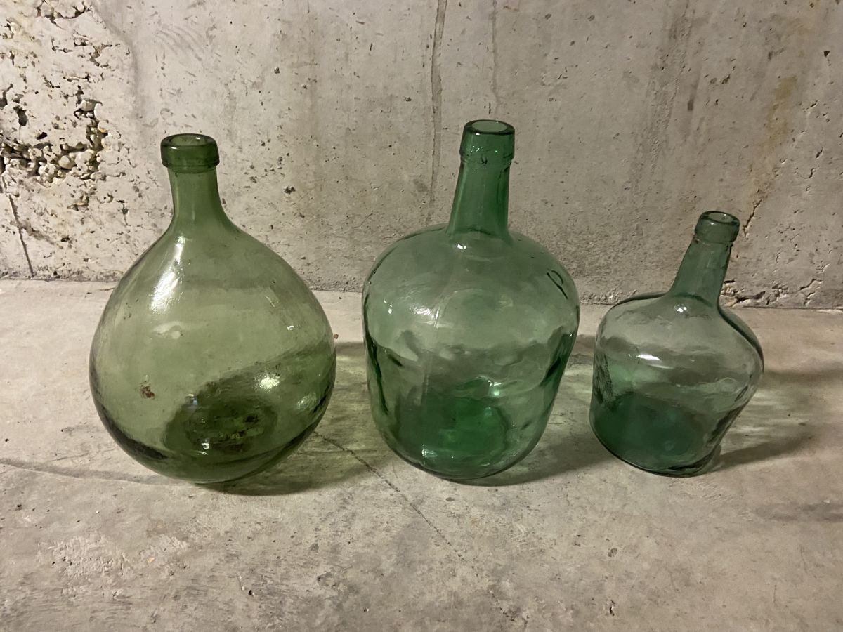 Lot de 3 Dames Jeanne, dont 2 plus grandes de 30cm de haut et 20cm de diamètre et une plus petite de 24cm de haut et 14cm de diamètre, bon état.