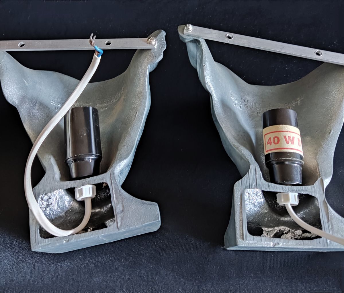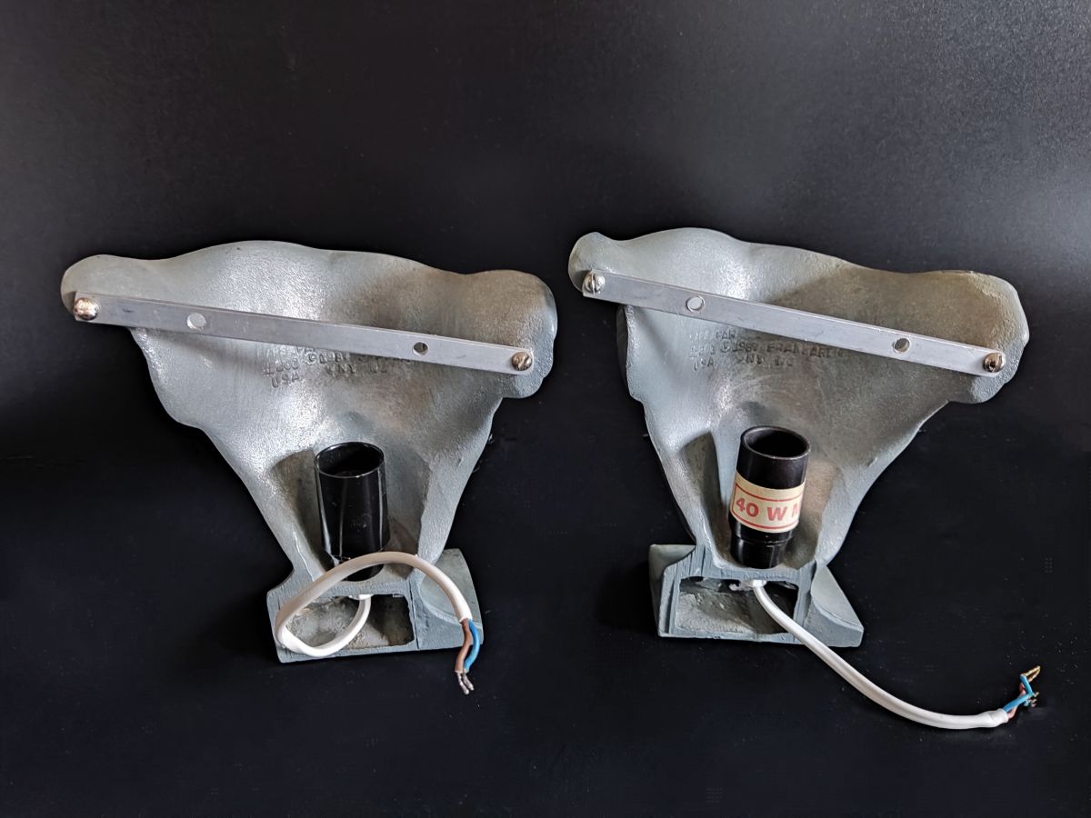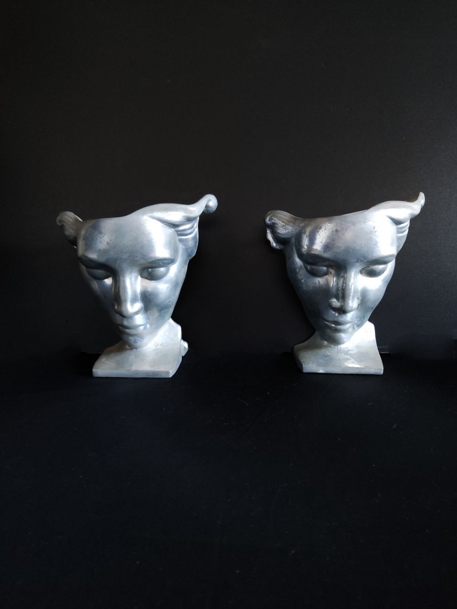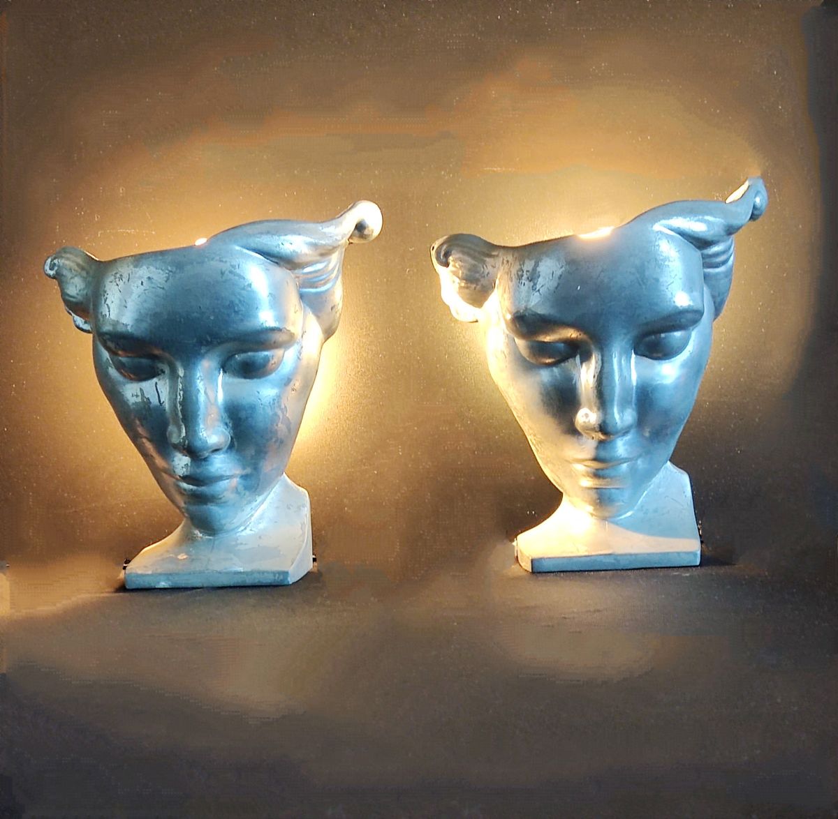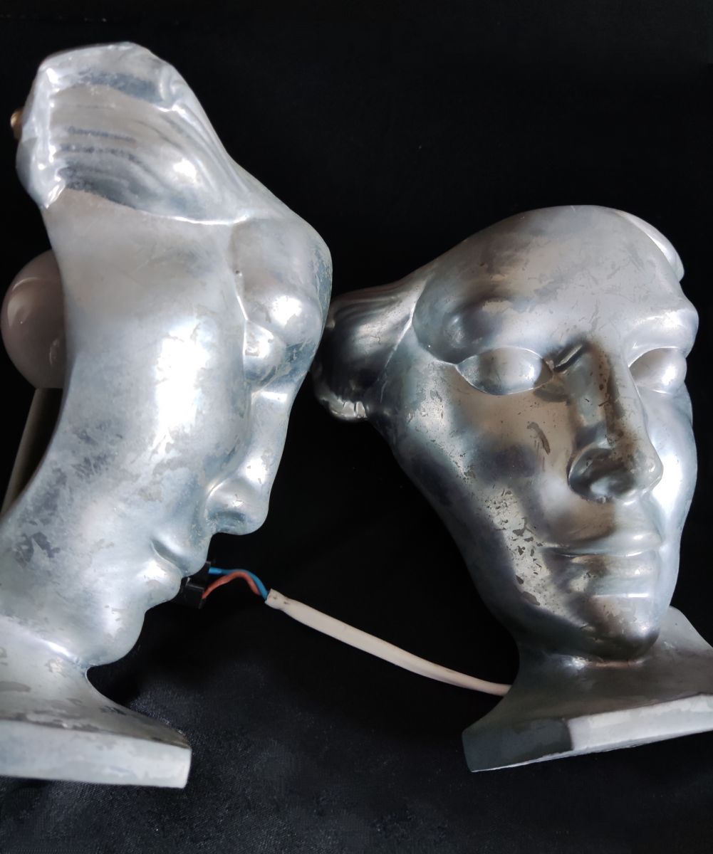 paire d'appliques murales nymphes art déco en fonte d'aluminium signées