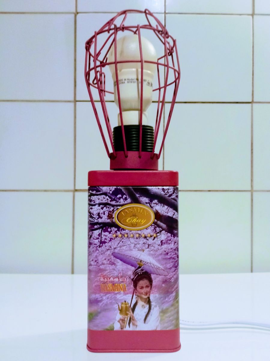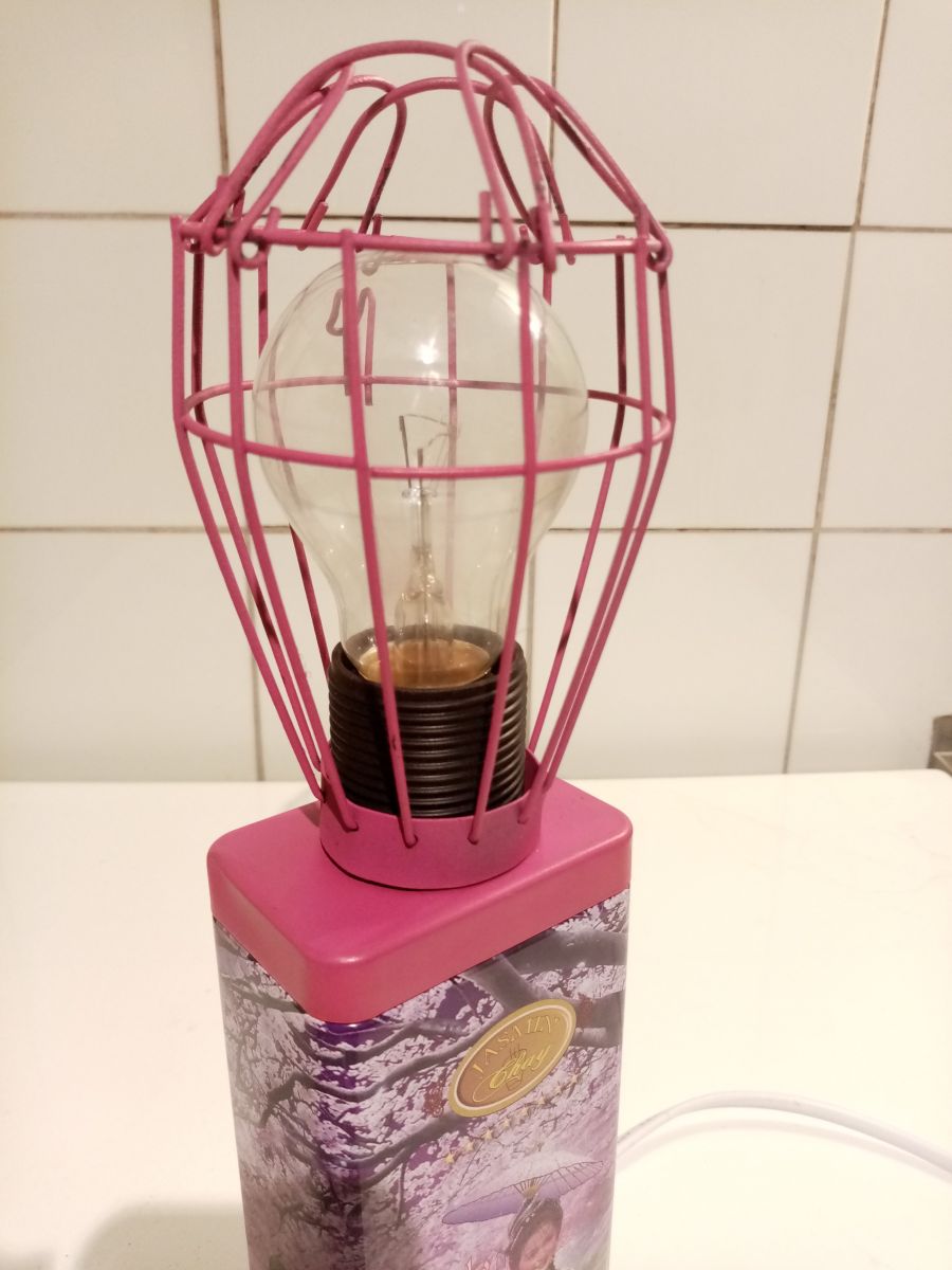 Jolie lampe dans une boîte à thé, insolite avec une touche de vintage mais un abat-jour industriel la rend incroyable ! Pour cette lampe originale, j"ai eu besoin d'une boîte à thé,en métal, repeinte en partie de la même couleur que son abat-jour.Elle comporte un cordons à interrupteur, une douille, une ampoule et une fiche murale. Posez la partout dans la maison, elle s"adaptera à tous les styles et trouvera sa place dans toutes les pièces.