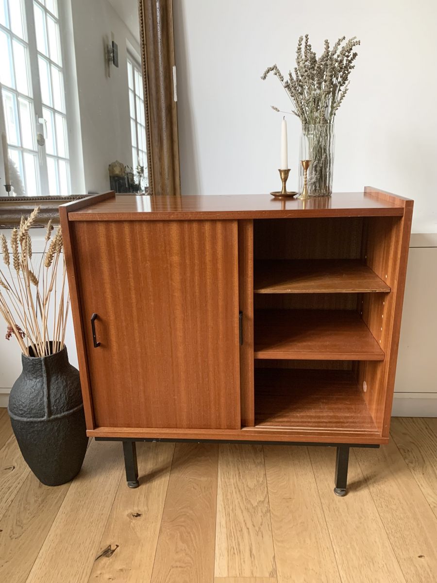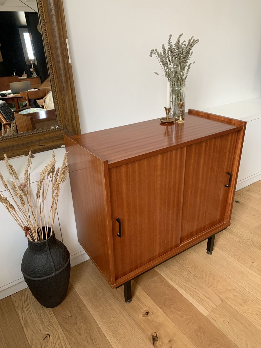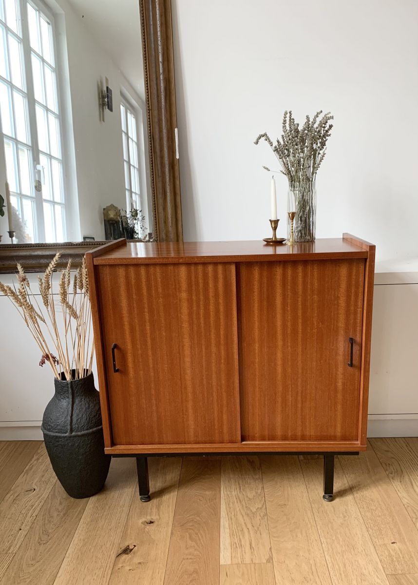 Elégante mini enfilade perchée sur de jolis pieds métal des années 70.