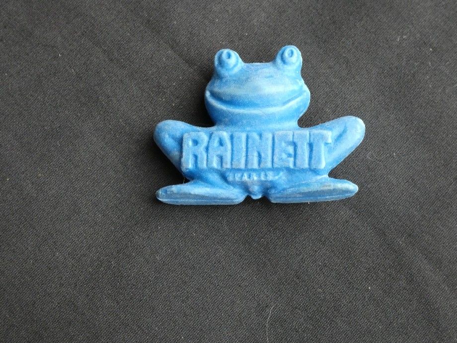 Gomme grenouille publicitaire de marque Rainett Paris (prêt à porter enfant années 60) avec sur le dos mode enfant en relief bon état de conservation dimensions 4.5x6cm prix 12 euros disponible 4